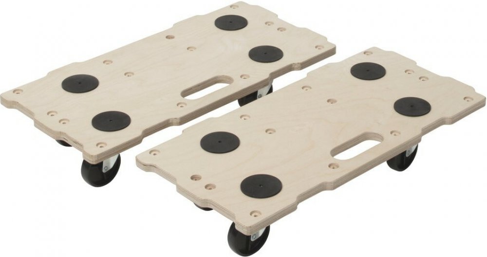 2 x FT 400 - stěhovací vozíky Puzzle Boards Modulární souprava pomocníků při stěhování z dvou stěhovacích vozíků, volitelně rozšířitelných lze použít jednotlivě nebo rozděleně na břemena až do 200 kg modulární systém lze pomocí dodatečných uhlů a plošin libovolně rozšířit kvalitní dřevo březové překližky s dlouhou životností, voděodolní úprava ergonomické rukojetě bezpečné držení se 4 protiskluzov...