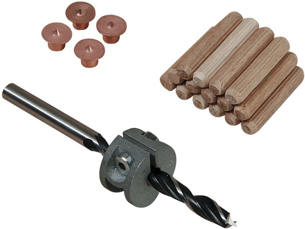 Pro výrobu hmoždinkových spojů, pro přesné značení otvorů pro kolíky, pro dřevo, překližky, dřevotřískové desky, konstrukční desky, vrták s přesně vybroušeným hrubovacím výstružníkem a středicím hrotem, nastavení hloubky vrtání pomocí hloubkového dorazu.