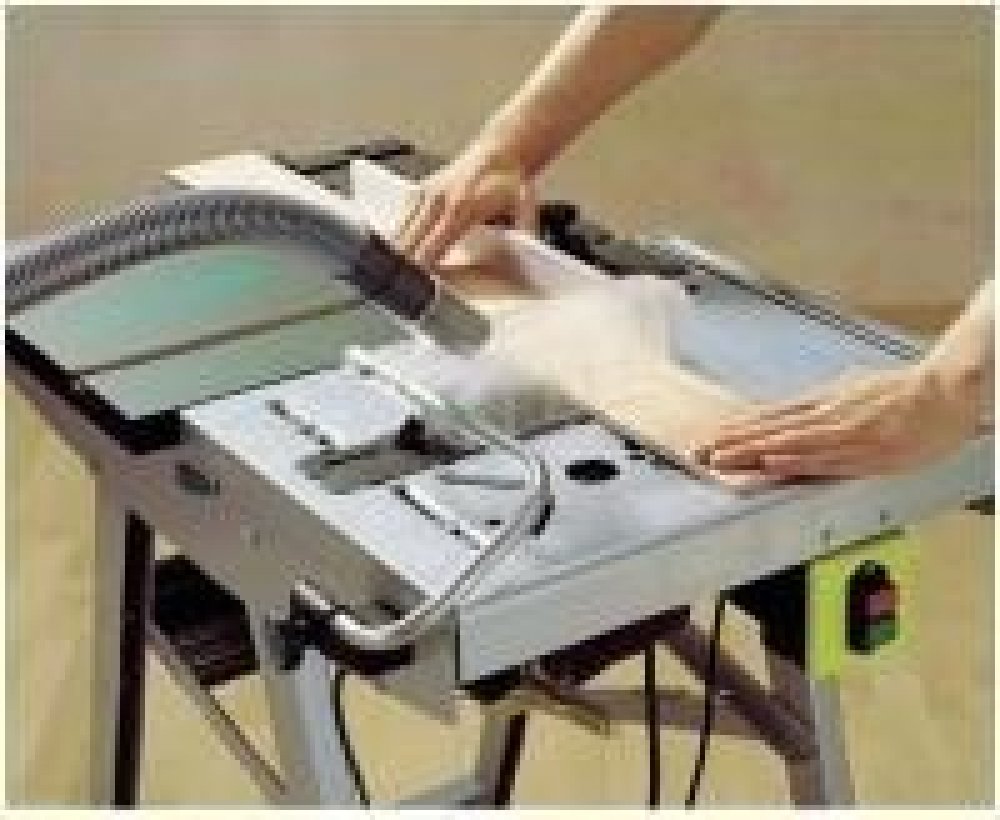 - Pracovní deska: MDF, tlakově litý hliník pro kotoučovou pilu s rozpěrným klínem (do max. 70 mm hloubky řezu, 200 mm průměru řezacího listu)