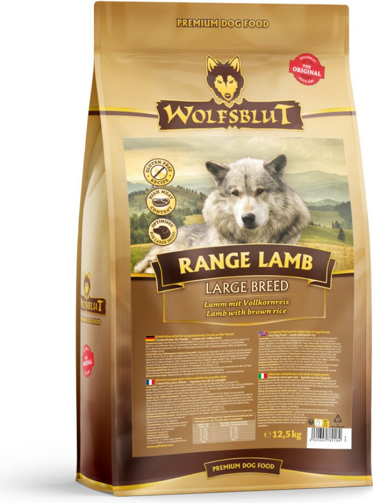 Receptura suchého krmiva RANGE LAMB LARGE BREED kombinuje výživu vlků s nejnovějšími vědeckými poznatky o správné výživě psů.