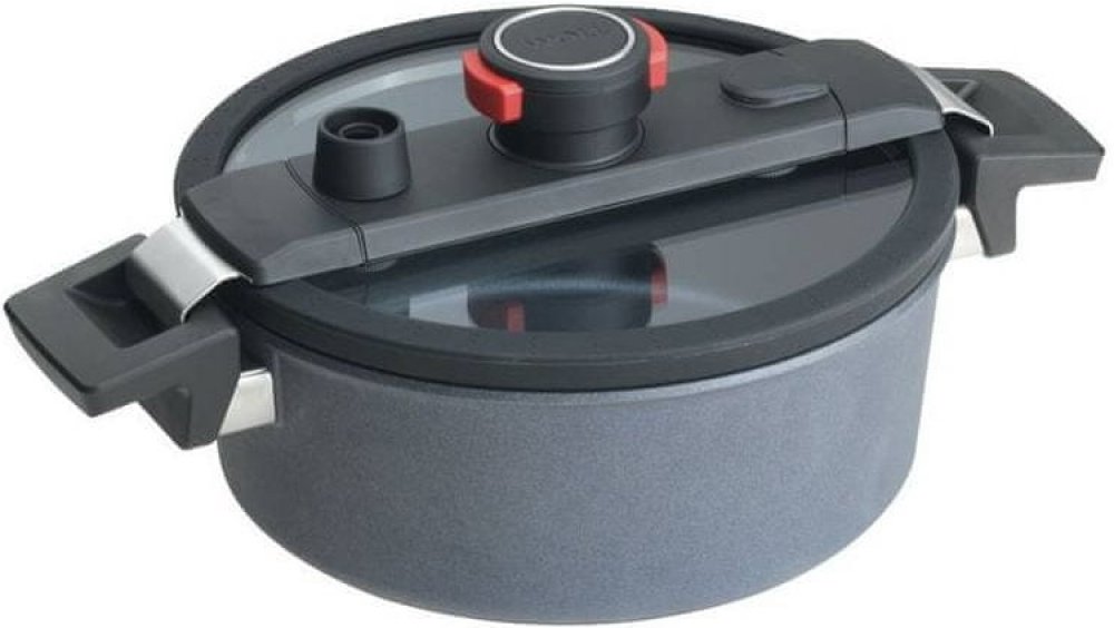 Polo-tlakový nízký hrnec WOLL 24cm DIAMOND ACTIVE LITE. Vaření, dušení i pomalé tažení za zvýšeného tlaku, to je polo-tlakový hrnec, který kombinuje technologii nepřilnavého povrchu Woll s patentovanou poklicí, která je přizpůsobená vaření při mírně zvýšeném tlaku. Bod varu v tuto chvíli přichází podstatně dříve, takže při vaření nepřicházíte o chuť ani o důležité vitamíny. Co je největší výhodou?...