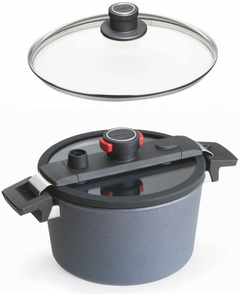 Kombinace nepřilnavého povrchu s patentovanou poklicí WOLL, která je přizpůsobena vaření v mírně zvýšeném tlaku. Při přidávání surovin do polotlakového hrnce nemusíte upouštět páru jako v klasických tlakových hrncích. Vše z...