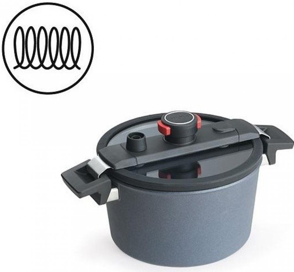Kombinace nepřilnavého povrchu s patentovanou poklicí WOLL, která je přizpůsobena vaření v mírně zvýšeném tlaku. Při přidávání surovin do polotlakového hrnce nemusíte upouštět páru jako v klasických tlakových hrncích. Vše za Vás obstará systém odemykání / zamykání pomocí jedné ruky na poklici. Bod varu u polotlakového hrnce Diamond Active Lite přichází dříve než u běžného tlakového hrnce, a proto potraviny neztrácí chuť ani vitamíny a také ušetříte až o 50% času a energie.