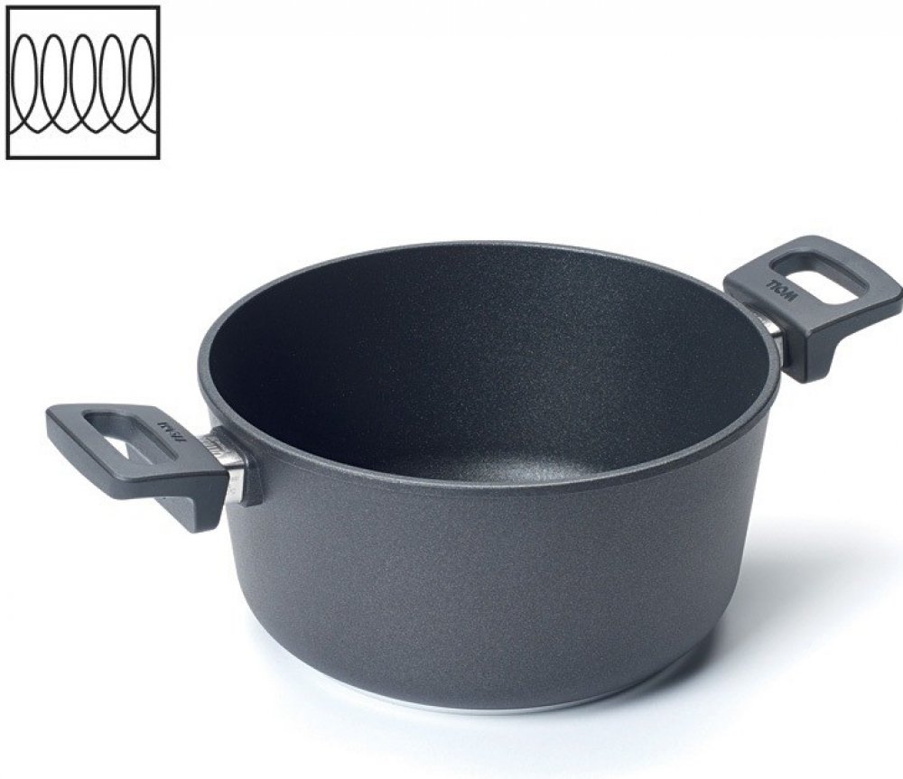 Další výhodou u tohoto hrnce je 1 cm silné dno. To se neprohne a vždy bude držet tvar. Pokud máte na své indukční desce funkci "boost", tak u této pánve jej můžete bez obav využít.