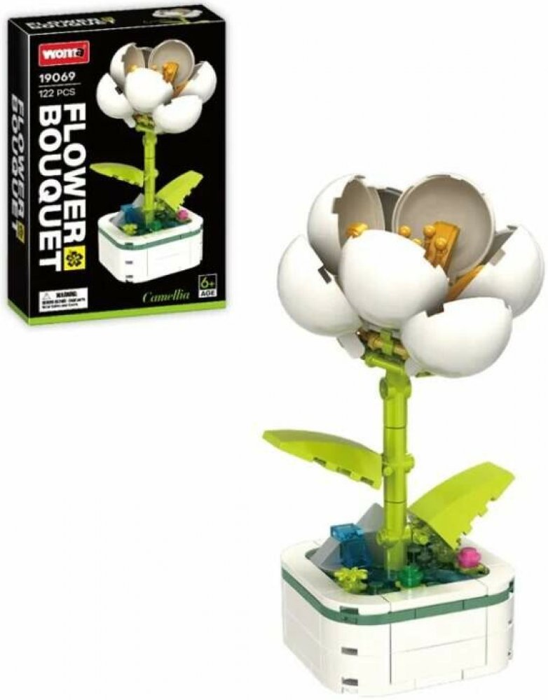 Woma Stavebnice květina s podstavcem, bílá kamélie, 122 ks