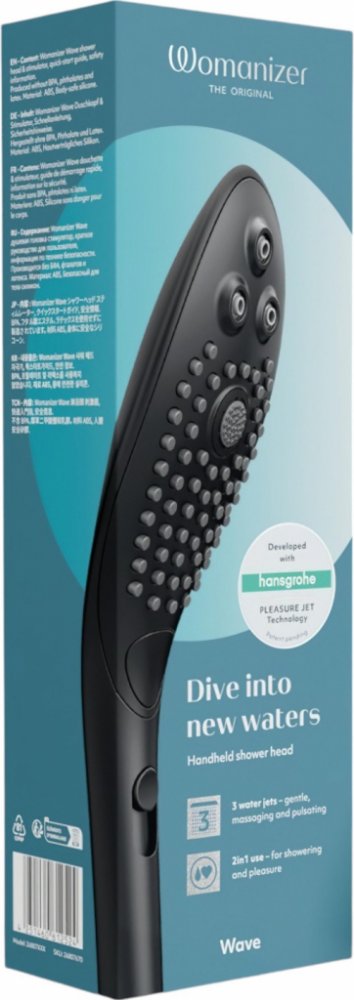 Womanizer, světová jednička mezi hračkami pro potěšení, přichází s revoluční sprchovou hlavicí, která zvedne stimulaci klitorisu na úplně novou úroveň díky cílenému proudění vody!Vývojáři Womanizer jako první spojili masáž vodním proudem a stimulaci klitorisu, a přizvali ke spolupráci inženýry prémiového výrobce koupelnových doplňků Hansgrohe. Výsledek je prostě parádní:první sprchová hlavice pro rozkoš!Proč si ji zamiluješ?Unikátní produkt - první sprchová hlavice navržená přímo na masturbaciErgonomický design - Wave se dokonale přizpůsobí ženskému tělu a je vytvořena právě pro sebeuspokojení2v1 - luxusní sprchová hlavice a masážní stimulátor klitorisu s vodním proudemŠetří vodu - Wave s technologií EcoSmart potřebuje o 60 % méně vody, ale tlak zůstává stejný3 různé režimy - Wave nabízí 3 režimy, takže si vybereš, co ti zrovna sedíPleasure Whirl: užij si 3 spirálové proudy na špičce hlavicePleasure Jet: zapni silný a cílený proud vody uprostřed hlaviceU režimů Pleasure Whirl i Pleasure Jet proud pulzuje - skoro jako vibrace, tlak se rychle měníPowder Rain: nastav jemné rozpršení z drobných trysek po celé hlavici a používej jako běžnou sprchovou hlaviciNastavitelný tlak vody - intenzitu si snadno reguluješ samostatným jezdcem plynuleSnadná instalace - Womanizer Wave pasuje na většinu běžných sprchových hadic, prostě jen našroubuješ a jedeš!Neobsahuje žádné elektrické součástky - bezpečné použití v koupelněPamatuj:Všechny tři funkce nelze použít najednou, jen každou zvlášťJak na to:Vyměň dosavadní sprchovou hlavici za Womanizer Wave a pusť vodu.Tlačítkem pod tryskami si vyber režim, který ti nejvíc vyhovuje, a jezdcem nastav sílu proudu.Díky ergonomickému tvaru Wave jednoduše nasměruješ proud vody přesně tam, kam chceš, v jakémkoli režimu.Balení obsahuje:1× sprchová hlavice1× samostatný filtr k vložení+ návod k použitíVlastnosti:první sprchová hlavice pro rozkošunikátní produktergonomický design2v1 - sprchová hlavice a stimulátor klitorisu s proudem vodyEcoSmart technologie - úspora vody3 rozdílné režimyPleasure Whirl - spirálový proud ze 3 trysekPleasure Jet - silný, přesný proud vpředuPowder Rain - jemné proudy z malých tryseknastavitelný tlak vody - ovládá se jezdcesnadná instalacekompatibilní s většinou sprchových hadicbezpečné použití v koupelně - žádné elektrické částirozměry: 27 cm × 8,8 × 7,3 cmhmotnost: 191 gbarva: chrommateriál: ABS plastDoporučení k čištění: Důkladně omyjte vlažnou vodou s jemným mýdlem, opláchněte a nechte volně uschnout. Doporučujeme použití speciálního čisticího prostředku (8718627520062) - k dokoupení.Mrkni na video s představením Womanizer Wave - masážní sprchová hlavice (chrom)!