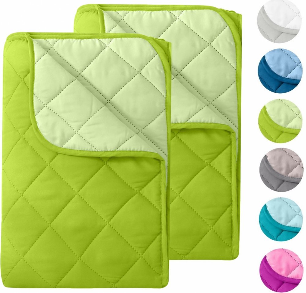 2 kusy přikrývek z mikrovlákna o rozměrech cca 155x220 cm v mnoha svěžích trendových barvách v oboustranném provedení - kempingová přikrývka nebo letní přikrývkaLehká prošívaná přikrývka z mikrovlákna ve svěžích trendy barvách a rozměrech cca 155x220. Ideální jako lehká letní přikrývka nebo vhodná také jako kempingová přikrývka či pikniková přikrývka - díky svěžím barvám ji lze používat i bez dalšího ložního prádla.Získáte přikrývku v nadčasovém designu a se sametově hebkou tkaninou z mikrovlákna, která je příjemná na dotek. Do měkké přikrývky se můžete ihned zachumlat a užít si příjemnou, klidnou a odpočinkovou noc. Ideální také pro vaši dovolenou v kempu u jezera, kterou si můžete dokonale užít!A mimochodem: je obzvlášť praktická jako lůžko pro hosty, kteří u vás přespí, protože ji můžete snadno a rychle srolovat a zase schovat! Skvělá deka je navíc pratelná na 95°, a proto je odolná proti vyvaření!Vlastnosti článku:sametově hebká přikrývka ve svěžích trendy barváchPraktická dvoudílná sadaOboustranný design ve dvou různých barváchlehká a vzdušná hmotnost každé z nich cca 800 gDiamantové prošívání s extra prošívaným okrajem, proto nedochází ke sklouzávání výplněLze použít jako přikrývku, piknikovou deku, lehkou deku, doma i na cestáchodolná proti vaření a snadná údržbaPodrobnosti: Vnitřní stěna je opatřena ochranným krytem proti hmyzu, který je vhodný pro všechny typy deky:Barva: 2x zelenáRozměry: cca 155 cm x 220 cmMateriálové složení: Potah: 100% polyester, mikrovlákno - Výplň: 100% polyesterPokyny pro praní: lze prát na 95°, snadná údržba a vhodné pro sušení v bubnové sušičce.