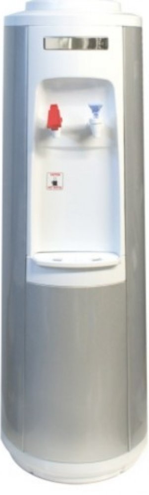 Vysoký podlahový výdejník v bílé barvě na studenou a horkou vodu určený k postavení na zem. Výdejník je kulatý, vyrobený z světle šedě lakovaného plechu. Podstavec, vrchní a střední část jsou z bílého plastu. Na zadní straně výdejníku se samostatně vypíná či zapíná ohřev a chlazení, takže je možnost při vypnutí ohřevu čerpat z červeného kohoutku vodu nechlazenou a používat výdejník k výdeji vody c...