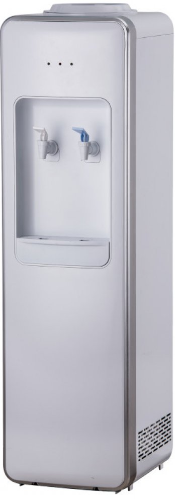 Vysoký moderní podlahový výdejník v bílé barvě se stříbrným lemováním na studenou, horkou a perlivou vodu s kohoutkovým ovládáním. Výdejník je vybaven zařízením AQUASTOP, které zastaví přívod vody v okamžiku, kdy dojde k nepřerušenému výdeji 4 - 60 l vody (dle nastavení). Tímto zamezí nechtěnému úniku vody a zaplavení okolí při poruše výdejníku nebo připojení k řadu.Na zadní straně výdejníku se samostatně vypíná či zapíná ohřev a chlazení, takže je možnost při vypnutí ohřevu čerpat z červeného kohoutku vodu nechlazenou a používat výdejník k výdeji vody chlazené a nechlazené (pokojová teplota).Na přední horní části výdejníku jsou 3 LED diody. Levá červená: když svítí, výdejník vodu ohřívá. Jakmile zhasne, má horká voda požadovanou teplotu. Pravá zelená: když svítí, výdejník vodu chladí. Když zhasne, má studená vody požadovanou teplotu. Prostřední oranžová: svítí stále a signalizuje, že výdejník je pod proudem a zapnutý.1. pozice: Kelímkem odtlačíme kohoutek od sebe a po dobu odtlačení teče do kelímku voda. Tuto polohu nelze zaaretovat.2. pozice: Páčku kohoutku přitáhneme k sobě a rychle vložíme pod kohoutek kelímek. V této pozici je páčka kohoutku zaaretována a voda teče nepřetržitě do doby, než páčku vrátíme mechanicky do svislé polohy.1. výdejník chlazené a teplé pitné vody s možností podávání vody o pokojové teplotě.2. vyrobeno z materiálů schválených pro styk s potravinami.3. nádržka na studenou a teplou vodu z vysoce kvalitní nerezové oceli SS304.4. distributor je certifikován CE v souladu s evropskými směrnicemi LVD a EMC.Výdejník je osazen 3 kohoutky. Dávkování perlivé vody tlačítkem.Nezapomeňte objednat redukční ventil a tlakovou lahev CO2 pro výrobu perlivé vody.VOLITELNÉ PŘÍSLUŠENSTVÍTlaková lahev CO2Redukční ventil