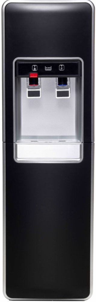 Vysoký moderní podlahový výdejník v černé nebo bílé barvě se stříbrným lemováním na studenou a horkou vodu s kohoutkovým ovládáním. Díky umístění barelu ve spodní části za dvířky, je tento výdejník moderním doplňkem do každé domácnosti nebo kanceláře - barel tak nenarušuje jeho vzhled.Výdejník je vybaven zařízením AQUASTOP, které zastaví přívod vody v okamžiku, kdy dojde k nepřerušenému výdeji 4 - 60 l vody (dle nastavení). Tímto zamezí nechtěnému úniku vody a zaplavení okolí při poruše výdejníku nebo připojení k řadu.Na zadní straně výdejníku se samostatně vypíná či zapíná ohřev a chlazení, takže je možnost při vypnutí ohřevu čerpat z červeného kohoutku vodu nechlazenou a používat výdejník k výdeji vody chlazené a nechlazené (pokojová teplota).Na přední horní části výdejníku jsou 3 LED diody. Levá červená: když svítí, výdejník vodu ohřívá. Jakmile zhasne, má horká voda požadovanou teplotu. Pravá zelená: když svítí, výdejník vodu chladí. Když zhasne, má studená vody požadovanou teplotu. Prostřední oranžová: svítí stále a signalizuje, že výdejník je pod proudem a zapnutý.Výdejník je osazen 2 opěrnými kohoutky s možností 2 pozic čerpání vody.1. pozice: Kelímkem odtlačíme kohoutek od sebe a po dobu odtlačení teče do kelímku voda. Tuto polohu nelze zaaretovat.2. pozice: Páčku kohoutku přitáhneme k sobě a rychle vložíme pod kohoutek kelímek. V této pozici je páčka kohoutku zaaretována a voda teče nepřetržitě do doby, než páčku vrátíme mechanicky do svislé polohy.1. výdejník chlazené a teplé pitné vody s možností podávání vody o pokojové teplotě.2. vyrobeno z materiálů schválených pro styk s potravinami.3. nádržka na studenou a teplou vodu z vysoce kvalitní nerezové oceli SS304.4. distributor je certifikován CE v souladu s evropskými směrnicemi LVD a EMC.