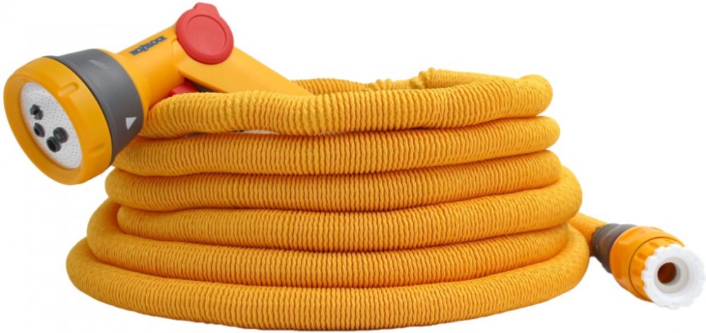 Po napuštění se hadice roztáhne až na trojnásobek své původní délky, po vypuštění vody se opět zmenší do kompaktní velikosti – perfektní pro úsporu místa.