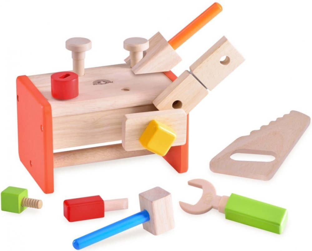 Dřevěné nářadí v přepravce ocení všichni malí kutilové a pomocníci. Dřevěná přepravka plná dřevěného nářadí je pro kluky jako dělaná. Naučí děti kreativnímu i logickému myšlení a pomáhá rozvíjet manuální dovednosti.