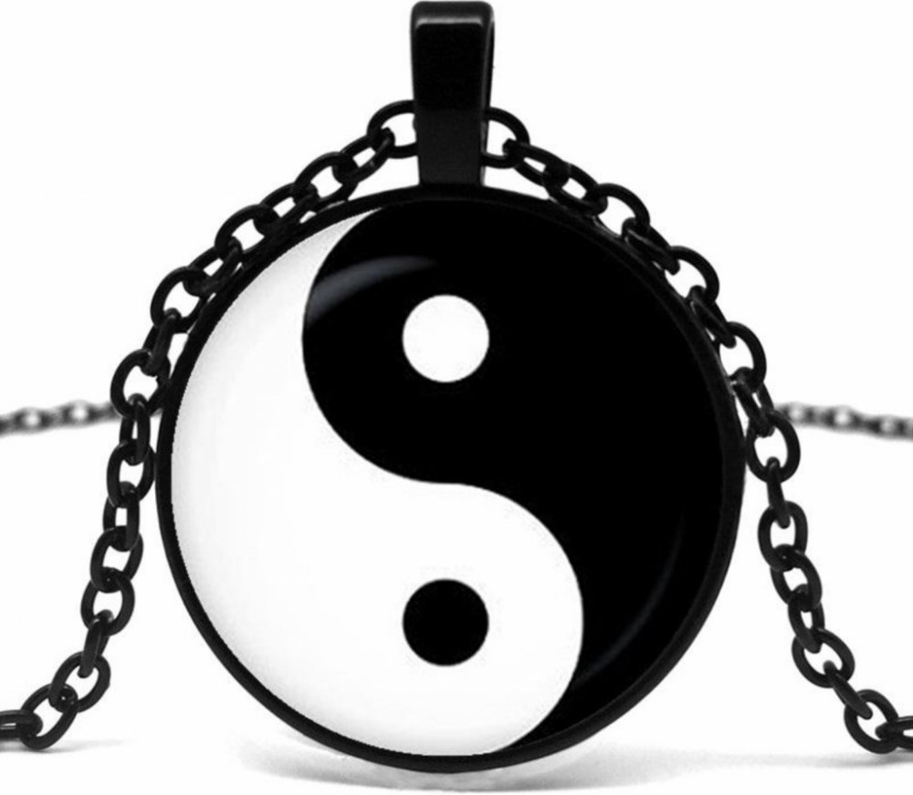 Přívěsek Jin Jang  rozměry přívěsku: výška včetně očka: 3,6 cm / průměr 2,8 cm délka řetízku: 50 cm materiál: zinková slitina s povrchovou úpravou SILVER , tvrzené sklo