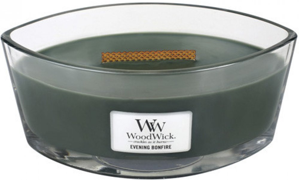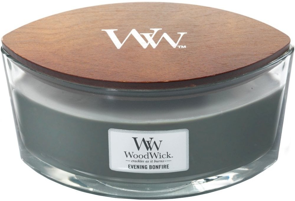 Svíčka loď - Evening Bonfire - 453,6 g, WoodWick Luxusně vonící svíčka/loď ve skleněné oválné váze s dřevěným víčkem WoodWick.
