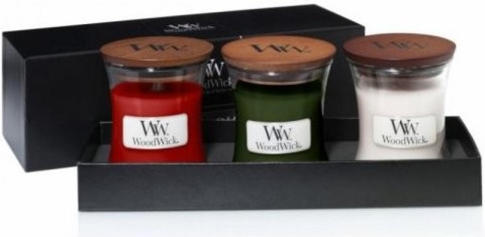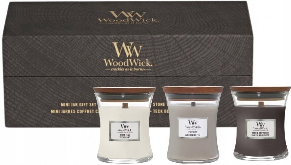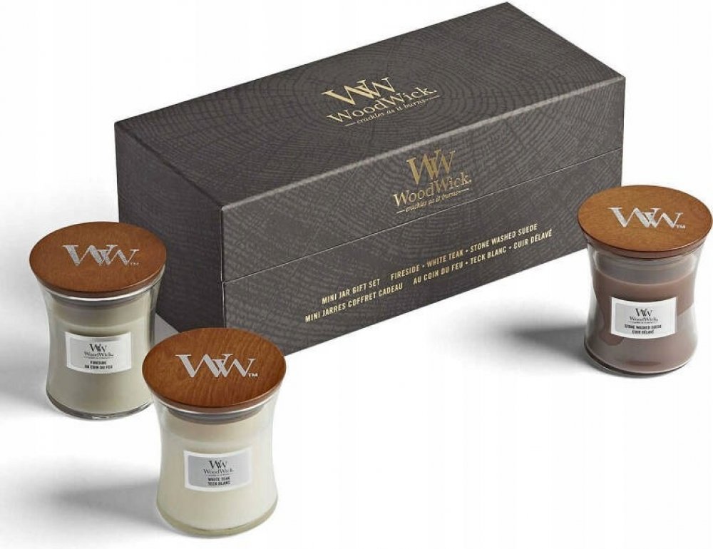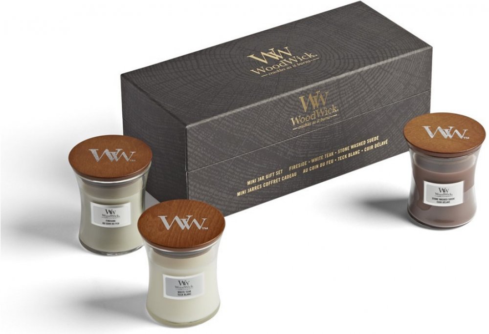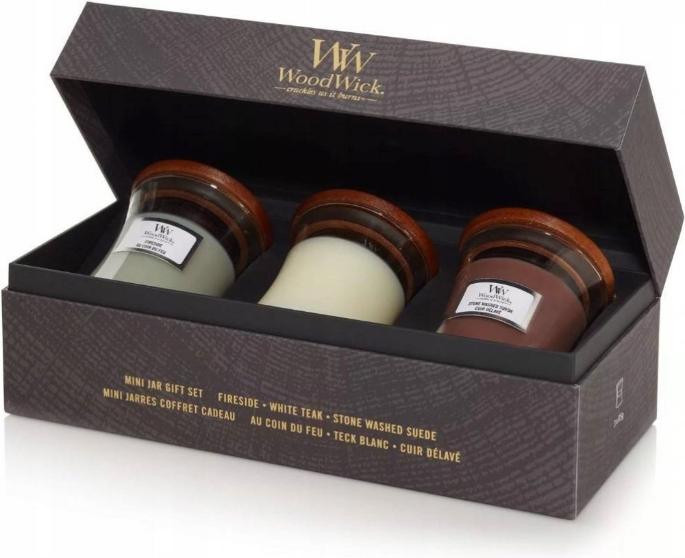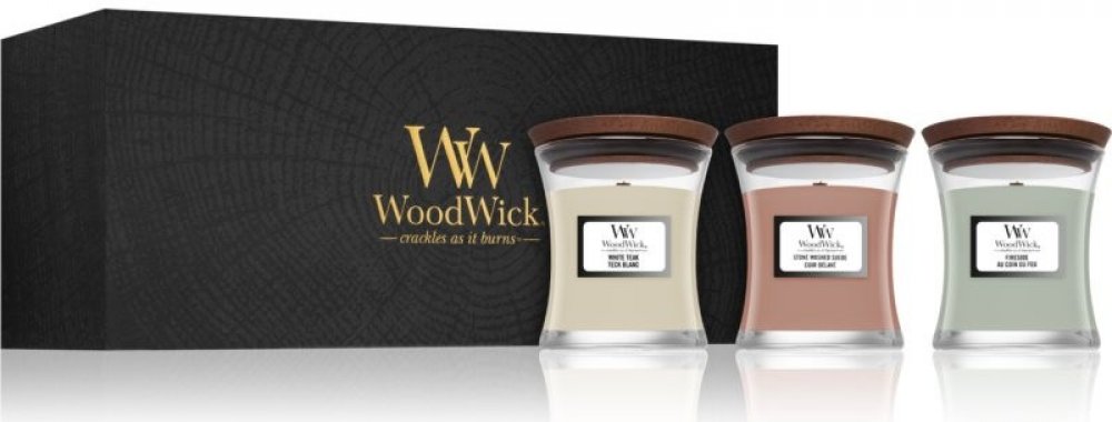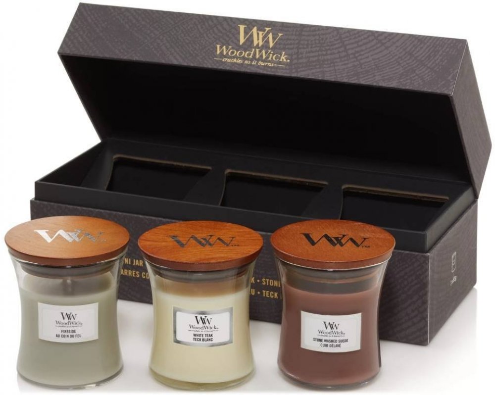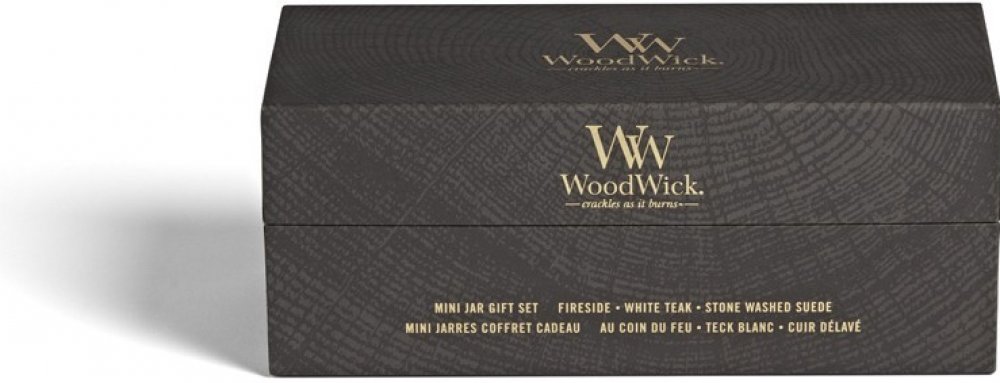 WoodWick Fireside & White Teak & Stone Wash Suede 3 x 85 g