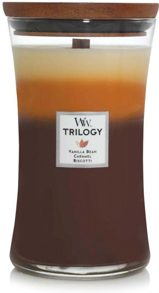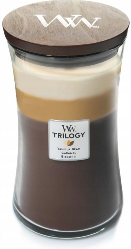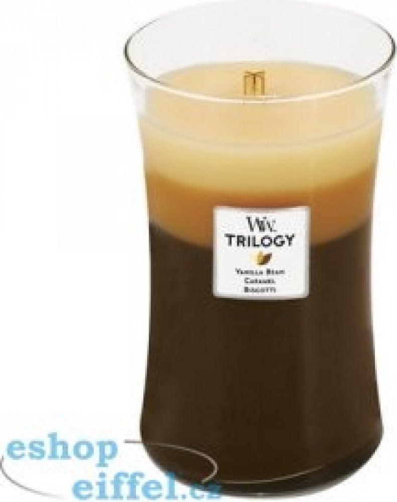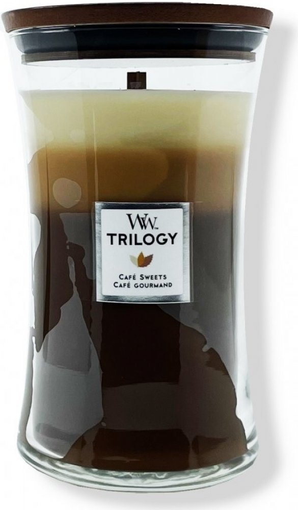 WoodWick 609 g kořeněné hnědé 120 hod 17.8 cm 10.2 cm 10.2 cm 10.5 cm aromaterapeutické Trilogy Cafe Sweets 1 610 ml