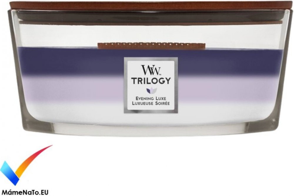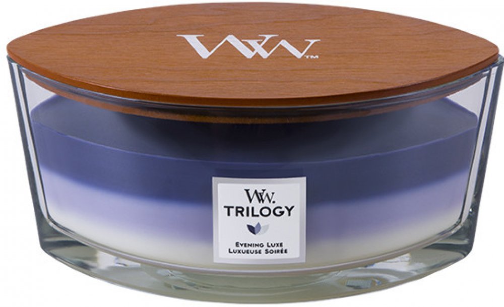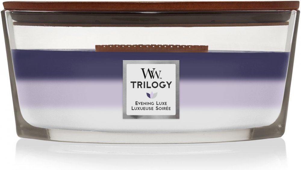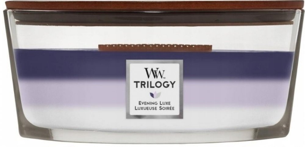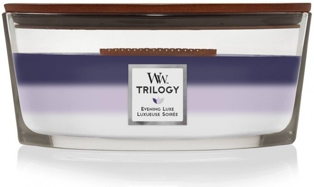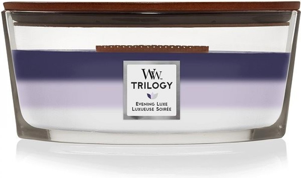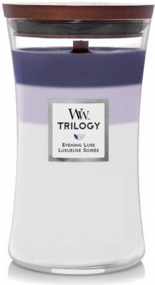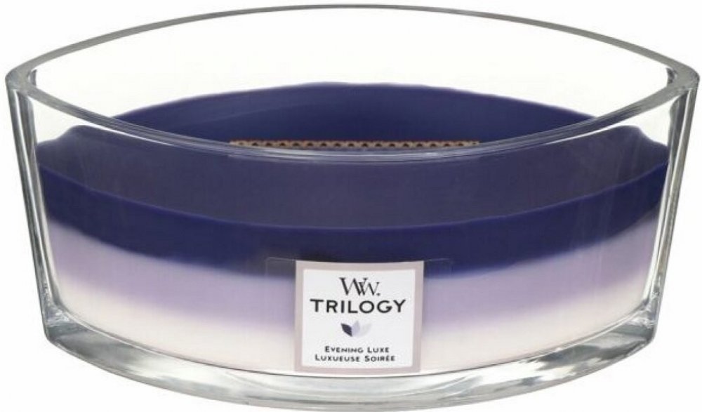 WoodWick 453.6 g kořeněné fialové 40 hod 11.4 cm 9.9 cm 9.9 cm Trilogy Evening Luxe 1