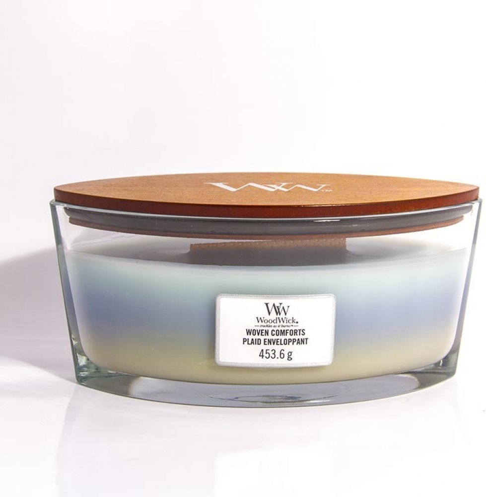 WoodWick 453.6 g svěží modré 80 hod 8.8 cm 11.3 cm 18.7 cm aromaterapeutické Trilogy Woven Comforts 1 4536 ml