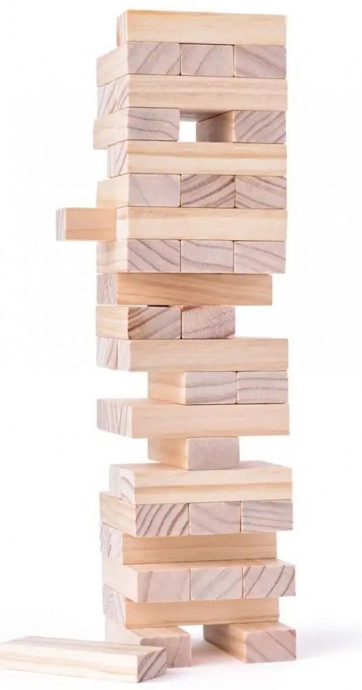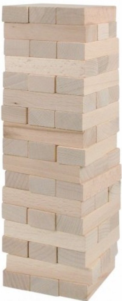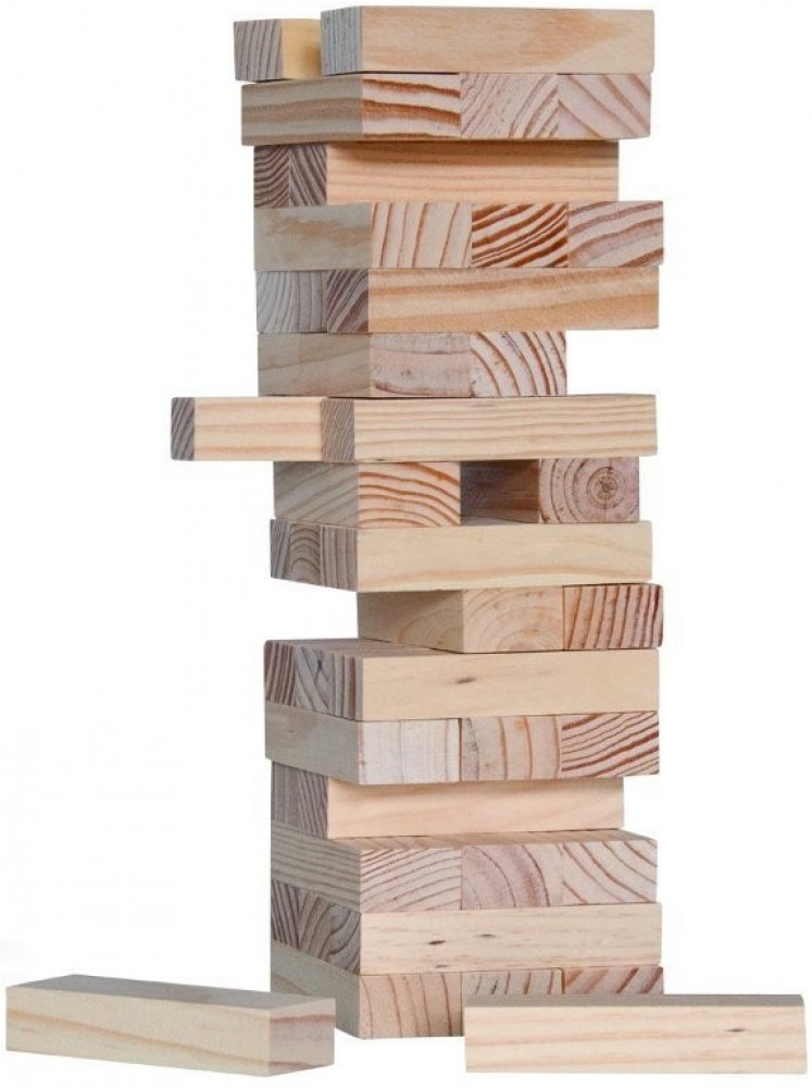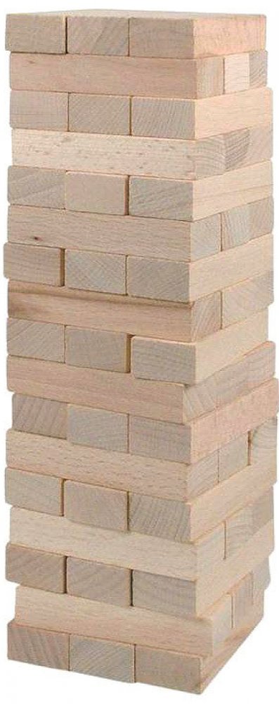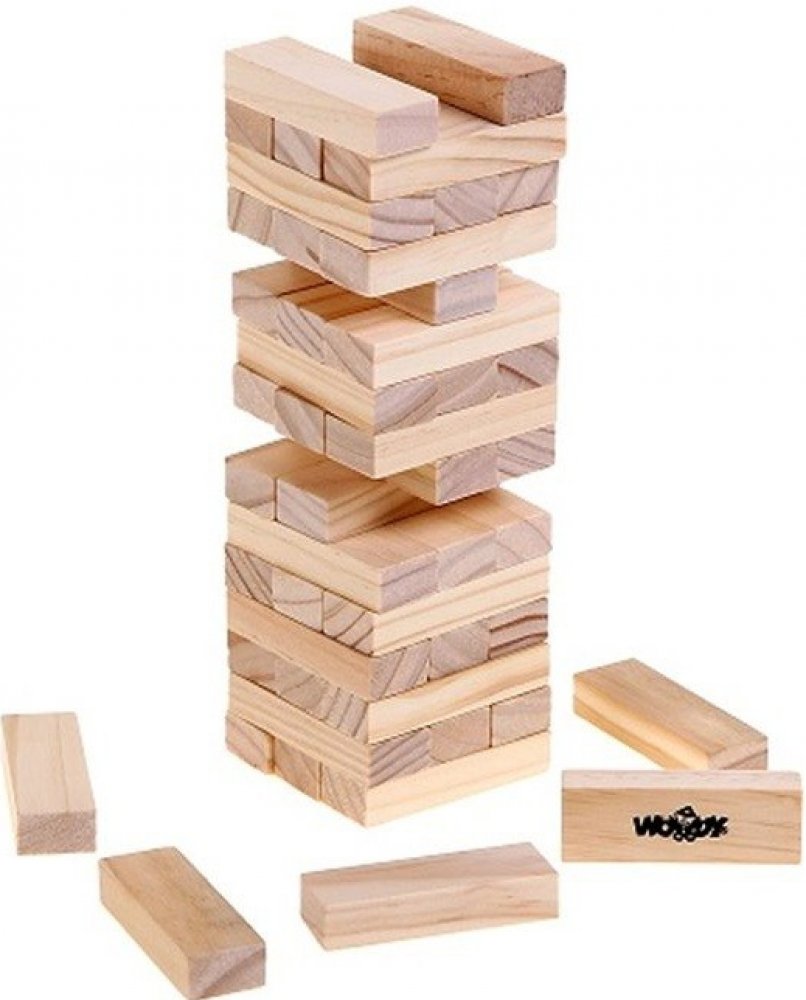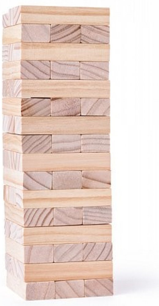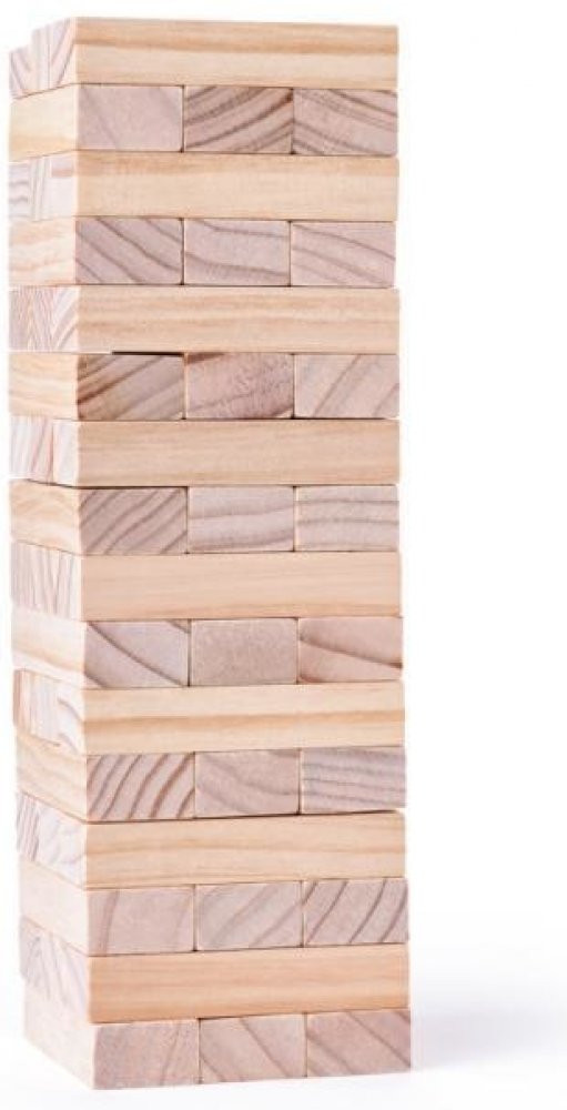 Hra obsahuje 48 dřevěných kostek - hracích kamenů. Ty se na sebe poskládají tak, aby tvořily kompaktní věž, vždy tři vedle sebe a na ně další tři křížem, až vypotřebujete všechny kameny. První hráč odebere jednu kostku zespodu nebo ze středu věže a položí ji - pravoúhle na předchozí řadu - na vrchol věže. Pokračuje další hráč tím samým způsobem. Než se začne nová řada, musí být předchozí řada komp...