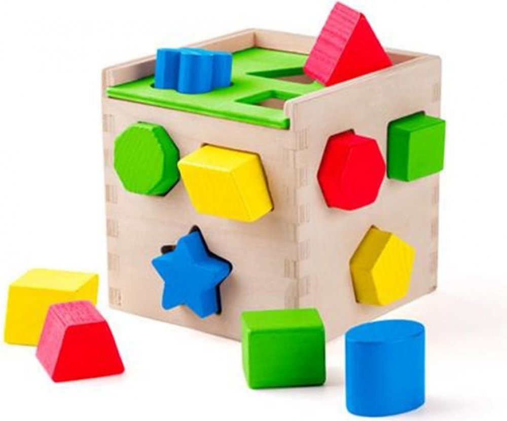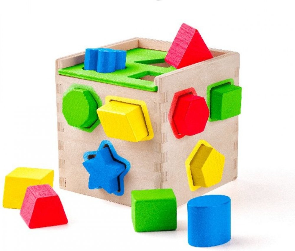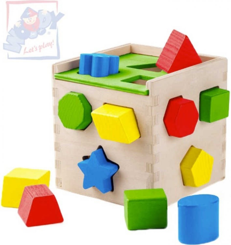 Obsah balení: vkládací kostka s víkem, tvary na vložení