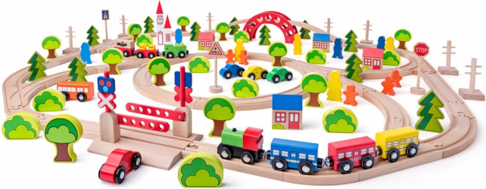 Tato krásná hračka potěší každého malého kluka. Obsahuje dráhu s mostem, značkami, domečky, stromy a dalšími doplňky. Příslušenství je navrženo českým designérem. Můžete jí sestavit pokaždé jinak.