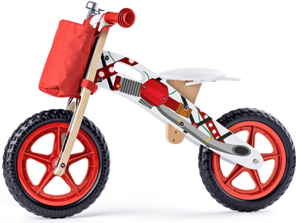 Odrážedlo Woody z dřevěného materiálu v designu motorky v červeném barevném provedení je vynikající pro přípravu na první jízdu na kole. Odrážedlo má lehkou dřevěnou konstrukci. Systém dorazů řídítek brání nehodám při jejich přetočení.