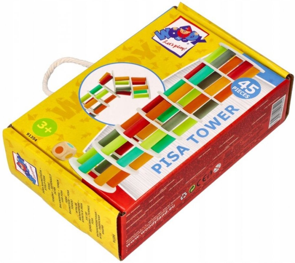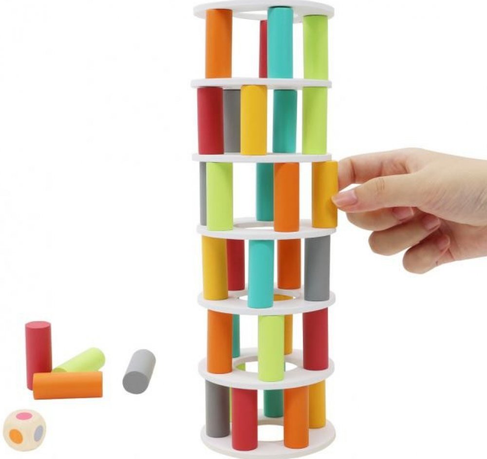 Úkolem dítěte je postavit věž z válečků a kroužků tak, jak ji vidí na obrázku. Pak může hra začít. Každý z hráčů postupně vytahuje válečky z věže tak, aby věž stále držela pohromadě. Komu věž první spadne, prohrává. Hra je určena pro 2 hráče, z nichž může být jeden rodič a druhý dítě.