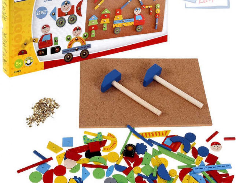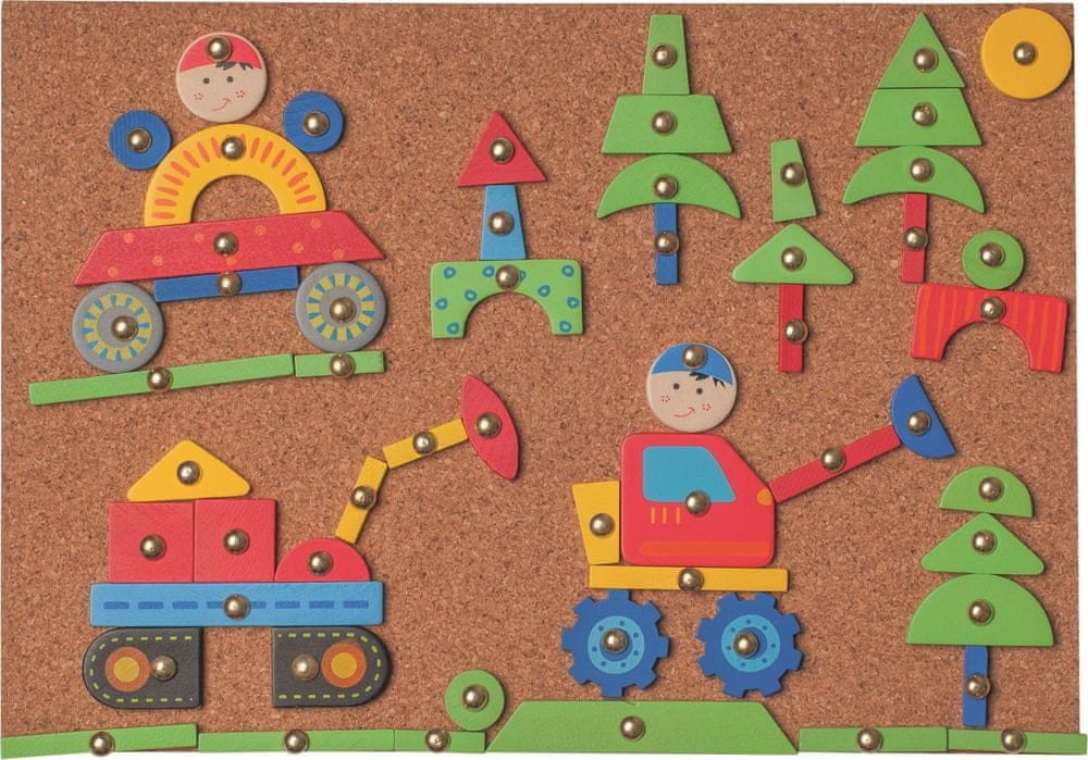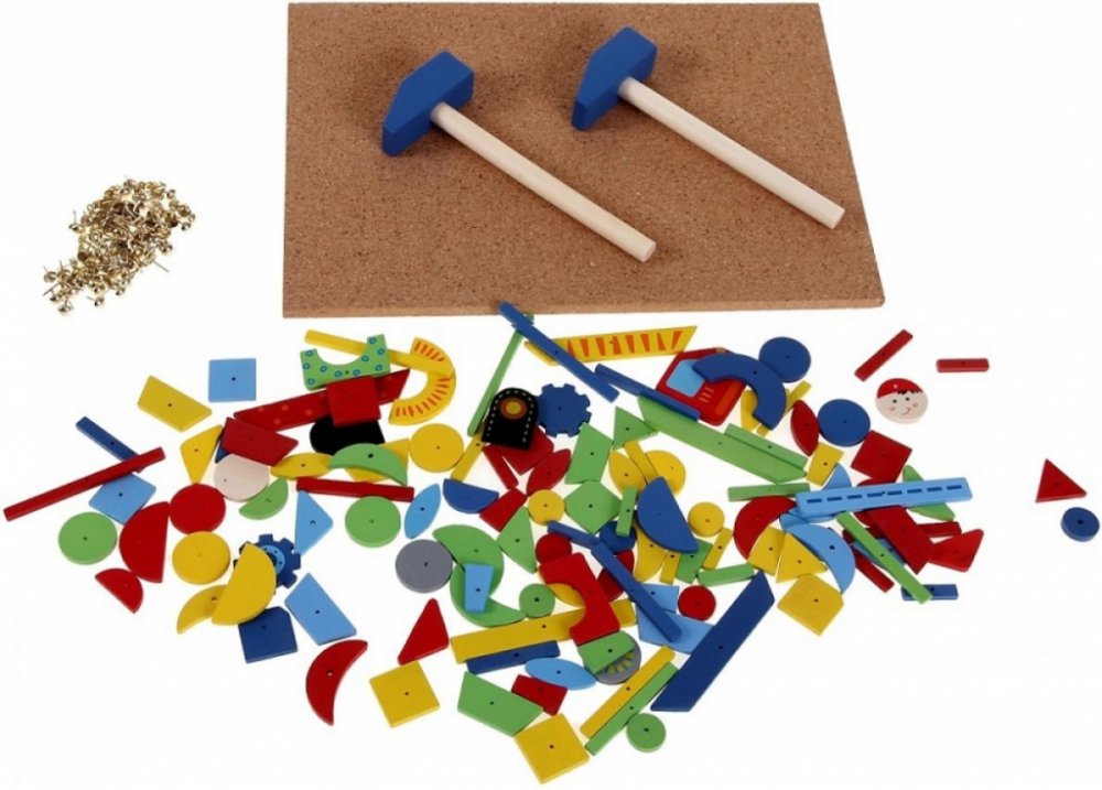 Balení obsahuje: 1x korková deska, 2x kladívko, 100x hřebíčky, 126x dřevěné tvary
