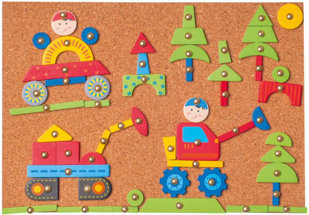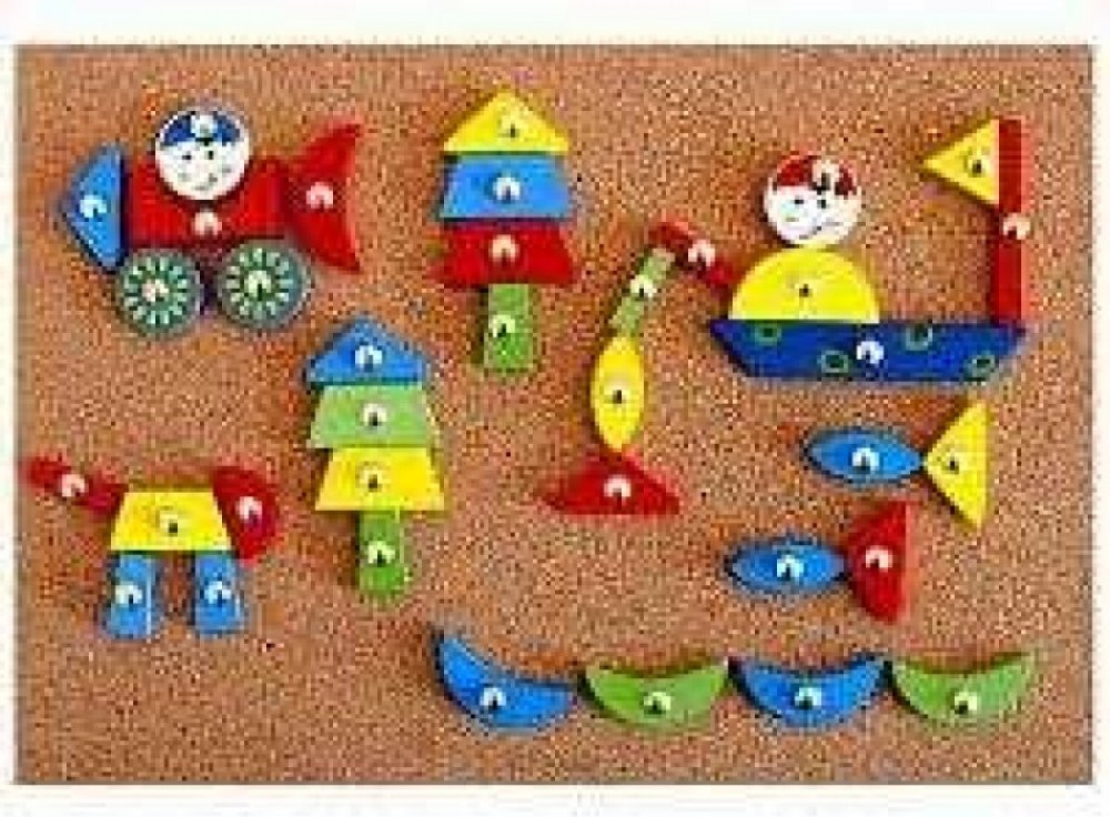 Korková deska s přibíjecími různými tvary.