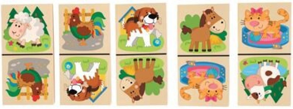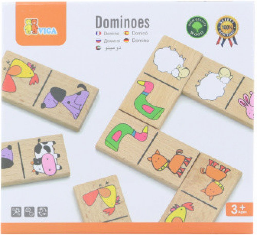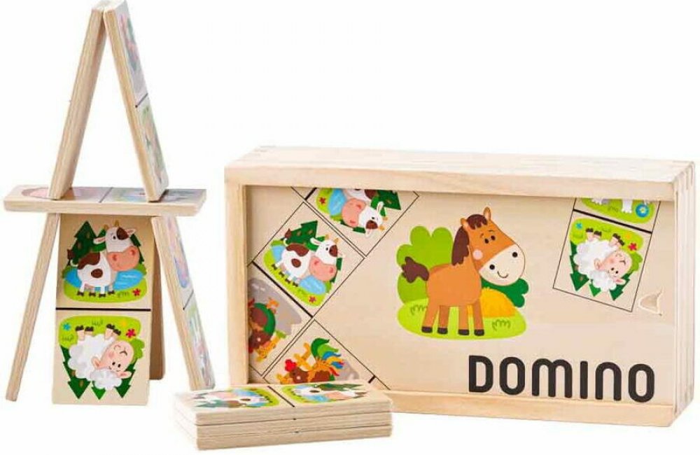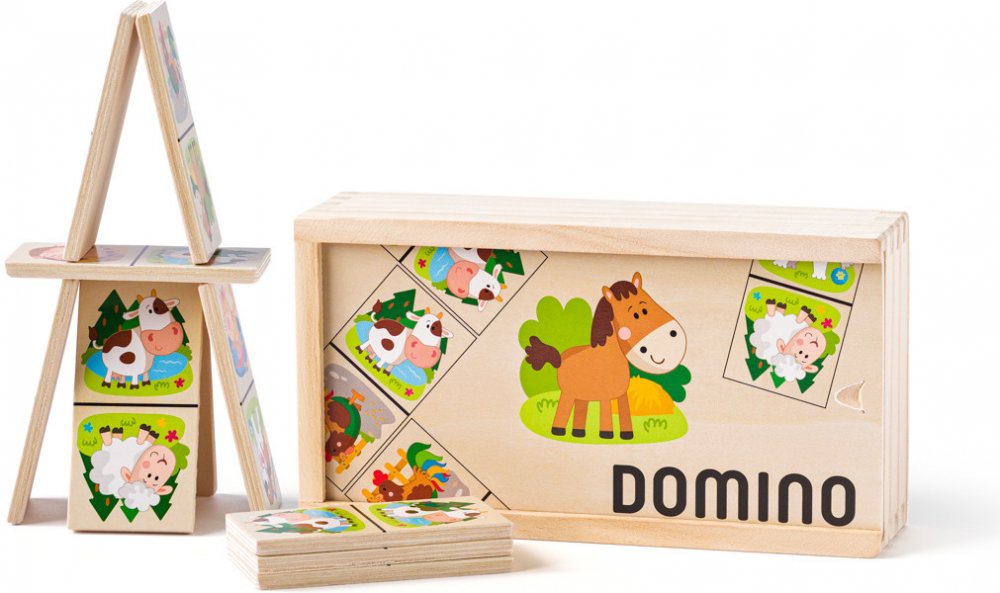 Klasické kameny domina jsou oživeny veselými obrázky domácích zvířátek z dílny české kreslířky. Tak jako u klasického domina má dítě za úkol řadit vedle sebe obrázky se stejnými zvířátky. Domino je uloženo v