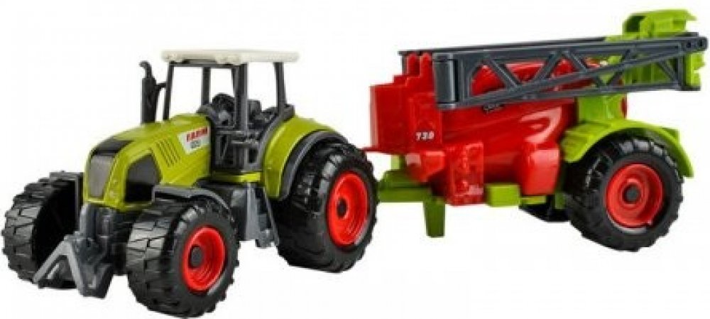 Traktory mají kovové tělo a realistické reprodukovány detaily jednotlivých částí. Uvnitř kabiny řidiče můžete vidět detaily sloupku řízení, rozšířený panel ovládající činnost traktoru a stroje, které jsou k němu připojeny. Na vnější straně výfukový systém s komínem, schodištěm a západkou zachytí oko. Dvounápravový přívěs na přepravu zvířat má otevíratelný zadní poklop, který také slouží jako můstek. Dvounápravový sklápěcí přívěs je mobilní, plovoucí nákladní prostor s přídavným zadním hatchbackem. Slámové nebo seno-balíky jsou také vybaveny dvěma osami a detailně je možné vidět konstrukci podsestav. Zadní strana tohoto zařízení je také otevřená. Postřikovač má jednu nápravu umístěnou na velkých kolech. Kromě toho je vybaven dvěma rameny, které se rozkládají ve dvou fázích, jakož i do pohyblivých chlopní infuze rozprašované látky. Všechny zemědělské stroje mají červené ráfky a černé, plastové kola s vysokým dezénem. Na pouzdrech zemědělských zařízení jsou speciální značky, které imitují značky a modely. Každý stroj může být navzájem zaměnitelný s každým z traktorů. Připojovací mechanismus vyžaduje pouze mírné vychýlení háku dolů. Hračky jsou vhodné pro vnitřní i vnější hru. Dětí se budou hrát v pískovišti, na zahradě trávníku nebo na balkoně nebo terase atraktivní. Soubor zemědělských strojů - farma bude skvělým darem pro každého malého nadšence zemědělské práce. Atraktivní barvy vypadají skvěle na poličce jako sběratelský model.