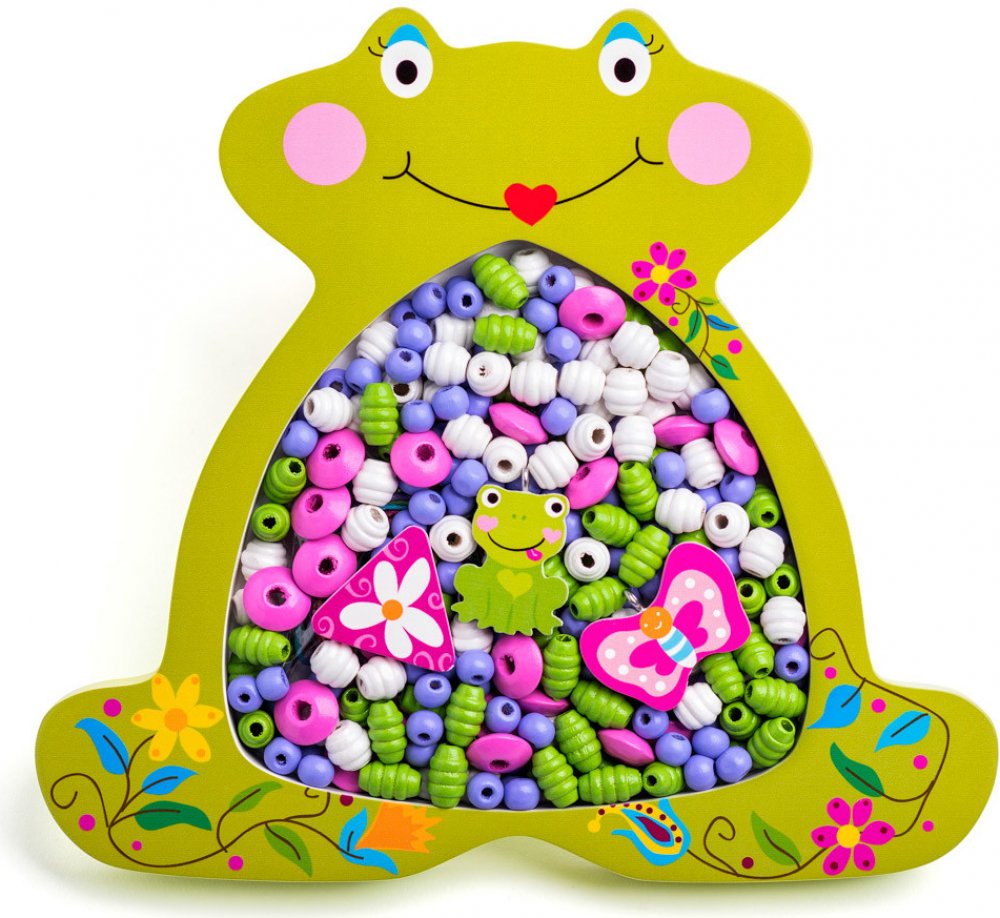 Sada obsahuje: barevné korálky různých tvarů, korálky s motivem žabky a šňůrky k navlékání. Dřevěná žabka, v které jsou korálky umístěny, slouží zároveň jako rámeček na fotografii, který je vybaven kováním na zavěšení.| Věk: 3+ | Rozměr žabky: 21,7 x 19,5 x 1,9 cm