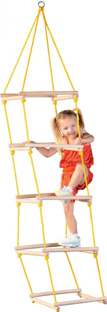Žebřík je určen pro zavěšení na zahradu, ale potěší děti i doma v dětském pokojíku. Bezpečné a rychlé zavěšení na jedno kovové oko. Pro zavěšení na bezpečnostní (nejlépe točivý) hák. (Hák není součástí balení).