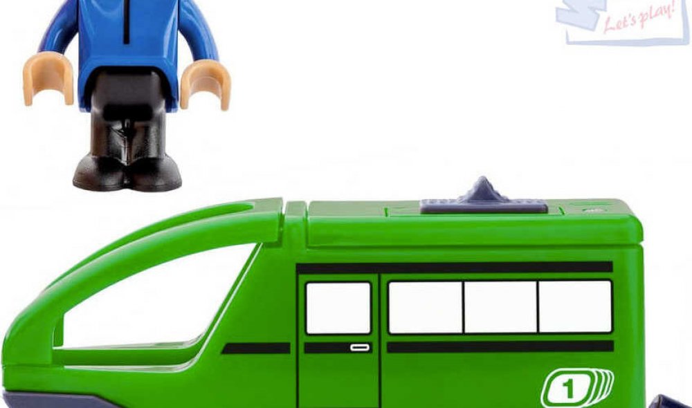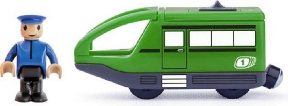 Elektrická plastová mašinka se zpátečkou. Pomocí přepínání na střeše mašinky může táhnout nebo couvat s celým vlakem. Mašinku připojíte k vagónům pomocí magnetu.