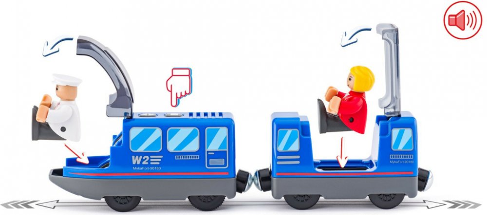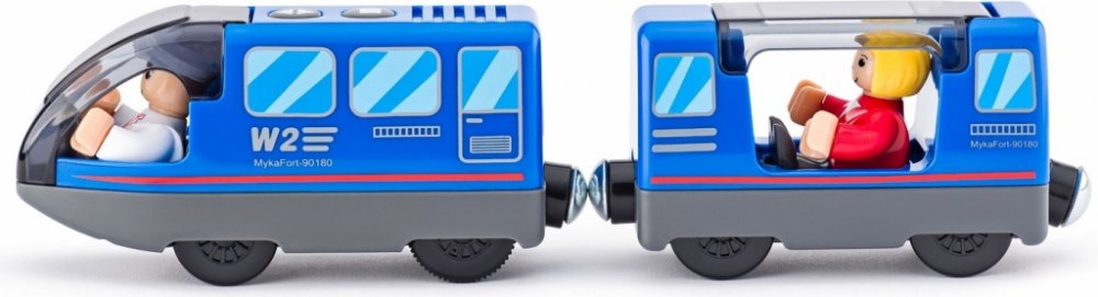 Sledovat lokomotivu jak projíždí, je někdy zábavnější než s ní přímo jezdit. Moderní lokomotiva pro osoby poháněná bateriemi, dokáže jezdit v obou směrech, utáhne ještě jeden vagónek. Hezký doplněk pro vláčkodráhy. Za vagónem rychlovlaku je magnet na uchycení dalších vagonků.