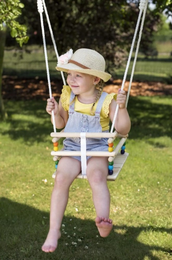 Před použitím vždy proveďte kontrolu háků, lan a dřevěných částí. Tento výrobek je nositelem značky „Bezpečné hračky“. Ta deklaruje kvalitní zpracování a naprostou bezpečnost používání.
