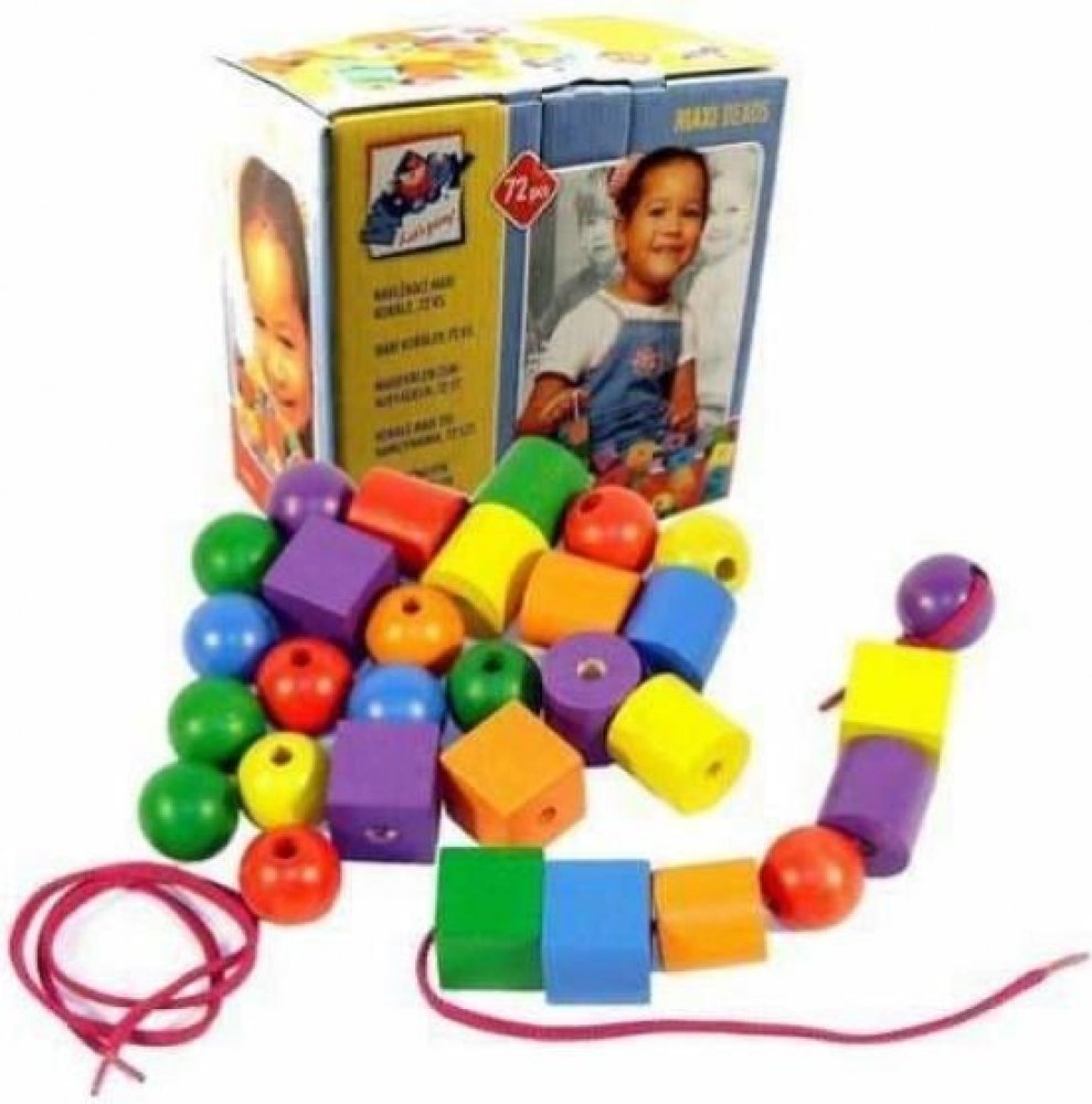 Dřevěné maxi korále jsou vhodnou hračkou pro rozvoj dětské motoriky, trpělivosti i fantazie. Navlékací korále pomáhají dětem se učit přesnosti, trpělivosti, rozvíjí jemnou motoriku, koordinaci pohybu a fantazii. Navlékání je oblíbenou dětskou činností a proto je po těchto hrách stále poptávka. Set obsahuje dřevěné korále, které jsou velikostí uzpůsobeny zručnosti malých dětí. V balení jsou 2 navlé...