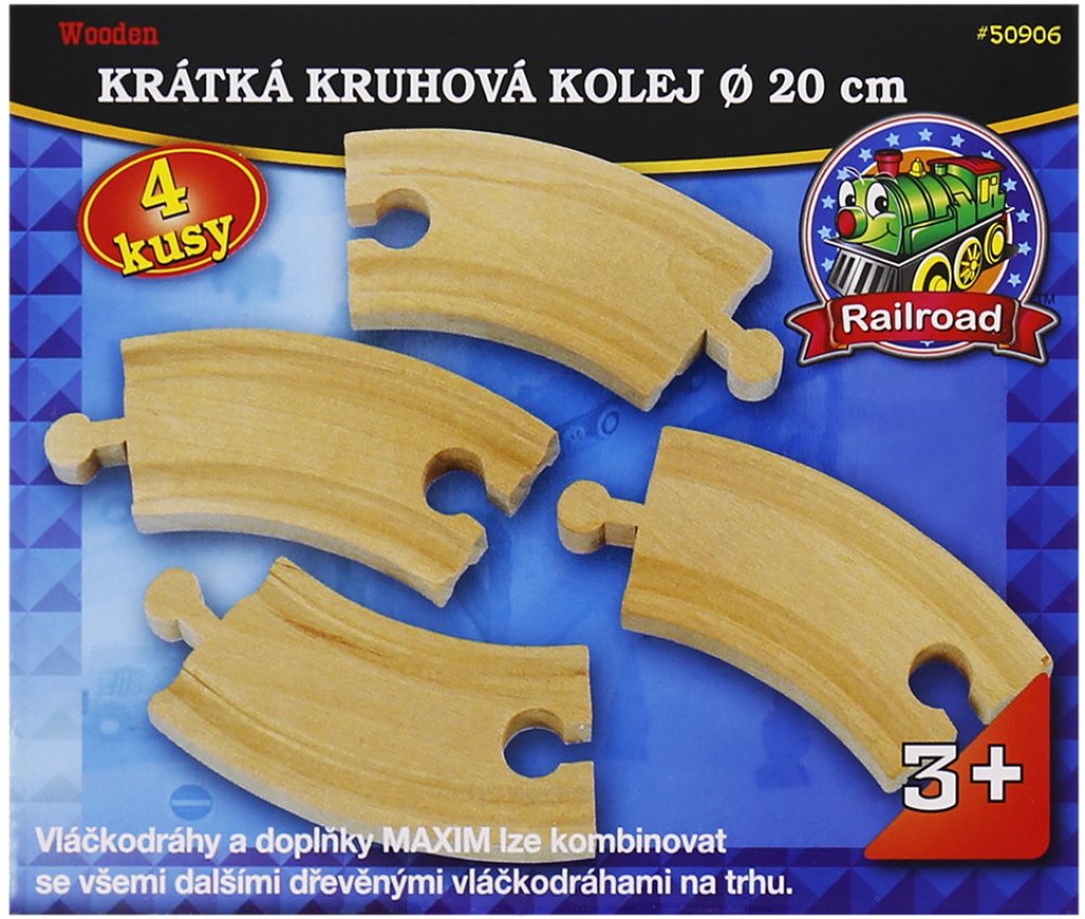 Balení obsahuje 4 oboustranně frézované dřevěné koleje o délce cca 8 cm.