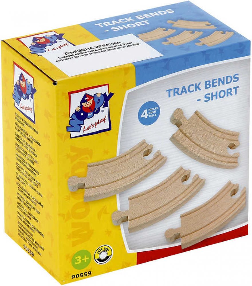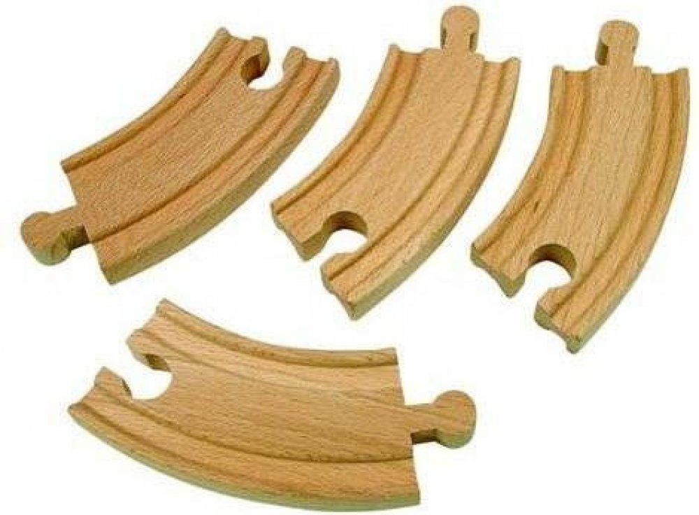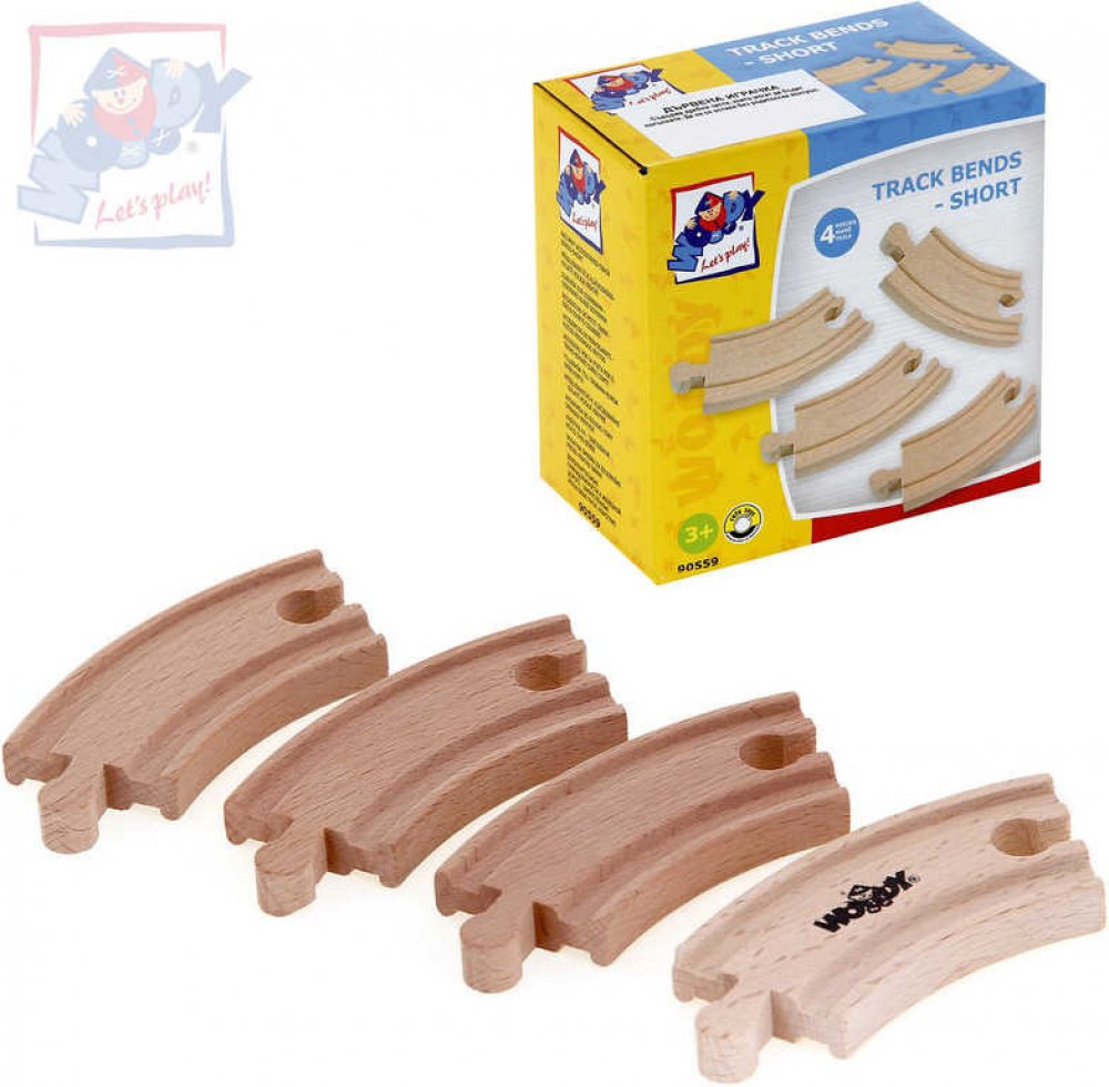 Sada čtyř kusů kolejí k vláčkodráhám Woody. Části jsou vyrobeny ze dřeva nejvyšší kvality.