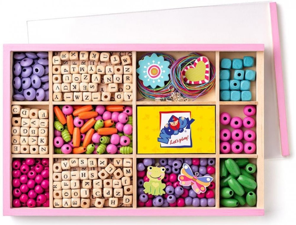 Sada obsahuje: barevné korálky různých tvarů, korálky s motivem ABC, květin, srdíček, zvířátek a šňůrky k navlékání se zapínáním. Sada obsahuje: barevné korálky různých tvarů, korálky s motivem ABC, květin, srdíček, zvířátek a šňůrky k navlékání se zapínáním. Vše umístěno v praktické dřevěné krabičce se zasouvacím víkem z plexiskla. Rozměr: 29 x 19,2 x 3 cm. Věk: 3+.