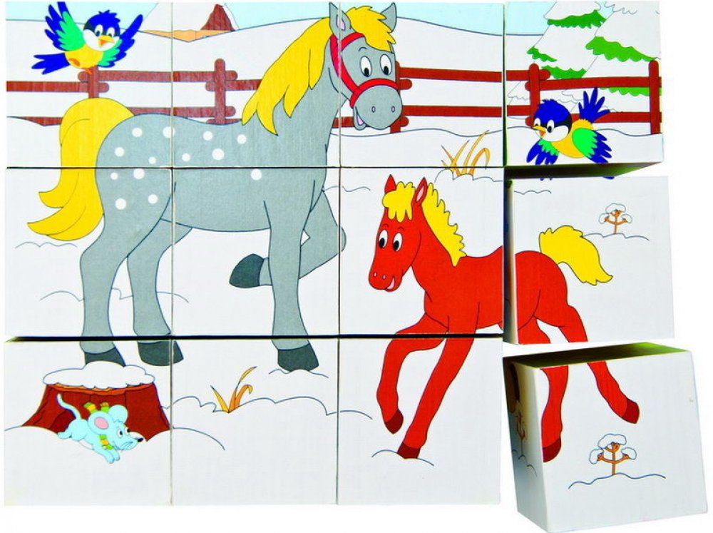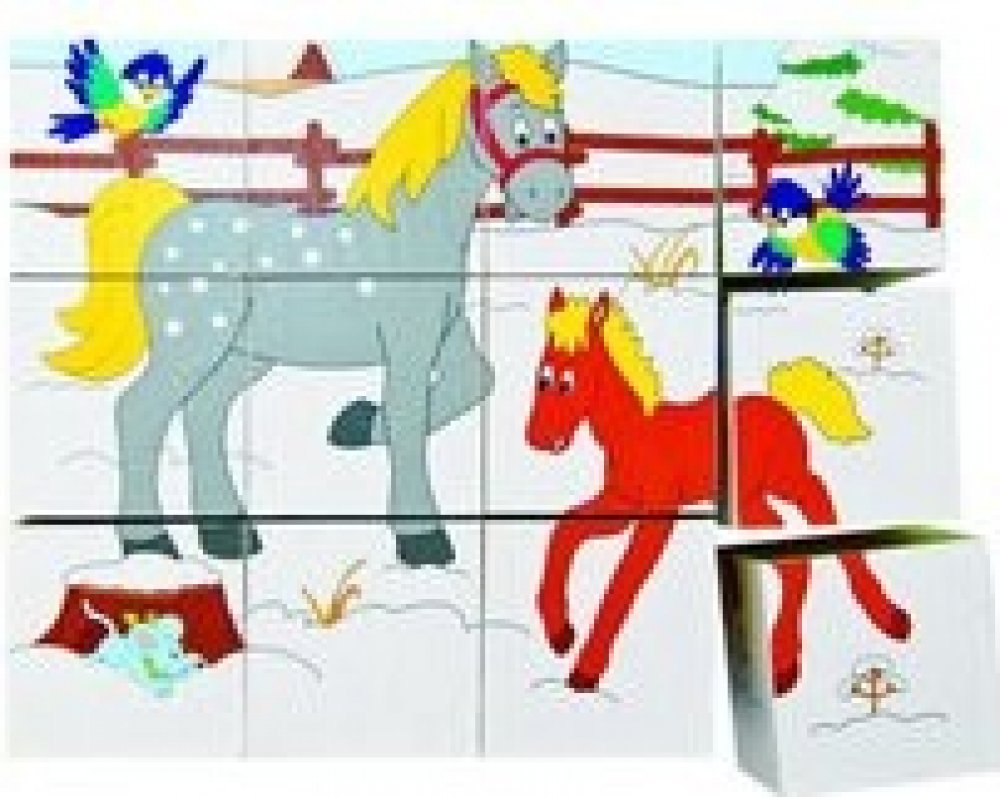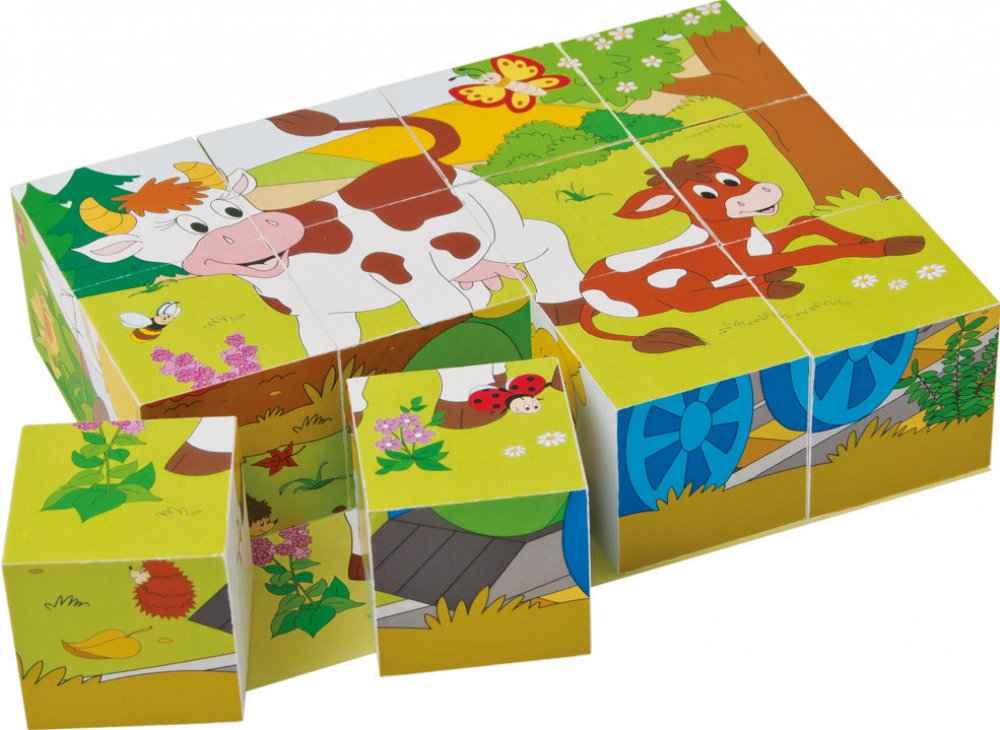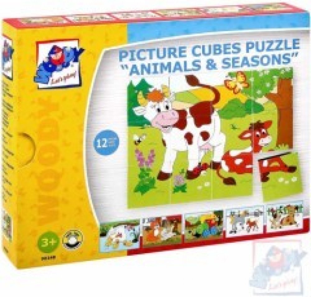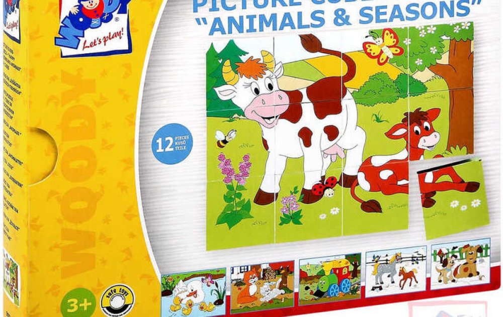 Kostky ze dřeva, s obrázky zvířátek a ročních období. Obrázky pocházejí z dílny českých ilustrátorů. Kostky jsou koncipovány tak, aby jejich správné poskládání usnadňovalo barevné ladění podkladů jednotlivých obrázků.