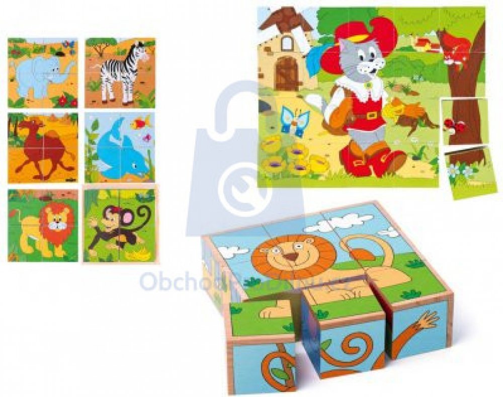 Dřevěné kostky s obrázky jsou skvělou zábavou pro děti. Nejen že se u toho zabaví, ale mladší děti si skládáním procvičují motoriku a představivost a starší děti kostky rády použijí jako základ svých staveb. Po sestavení do správných tvarů jsou kostky plné veselých barevných obrázků, které zaujmou i ty nejmenší stavitele. Kostky jsou vyrobeny z kvalitního masivního dřeva a poté jsou natřeny zdravo...
