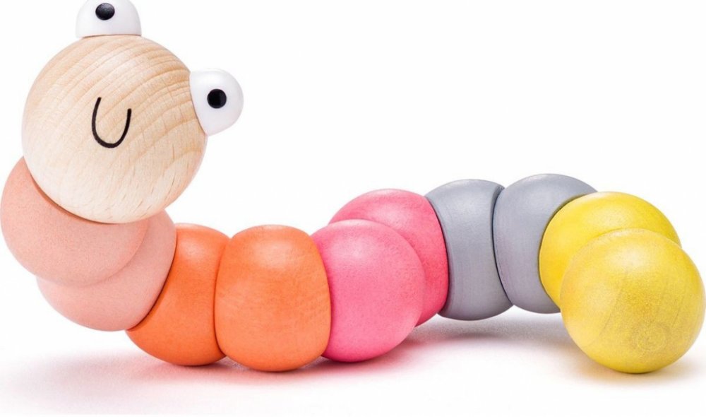 Tato hračka do ruky rozvíjí u dítěte jemnou motoriku. Červík je v každém kloubu flexibilní a proto ho lze vytvarovat do jakéhokoliv tvaru. Housenka pro nejmenší děti, ve dvou barevných variantách.