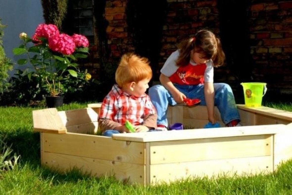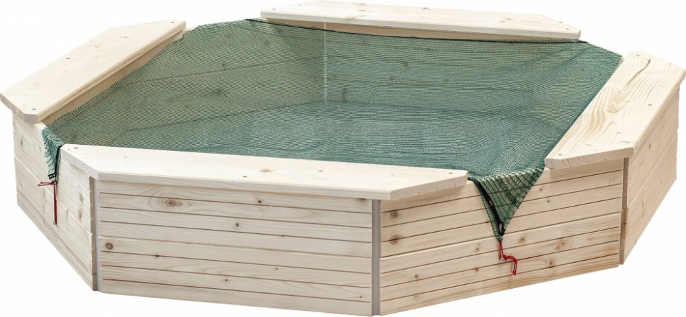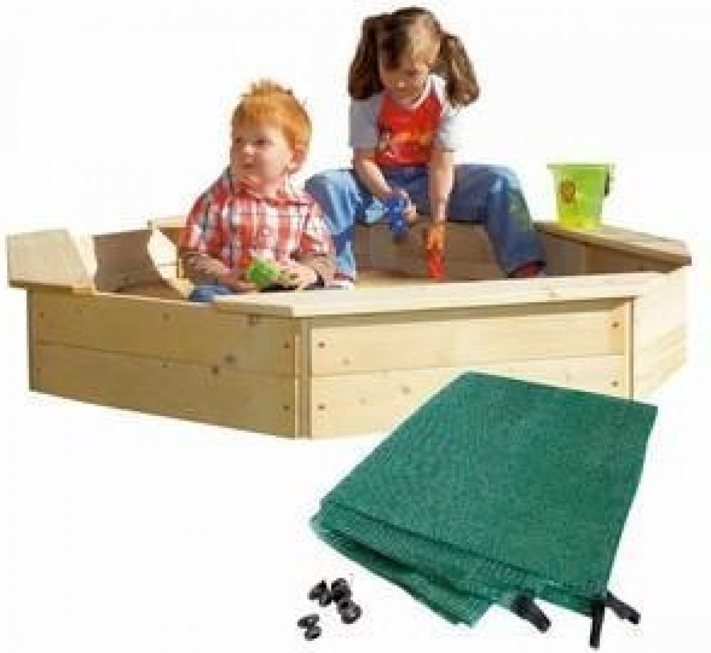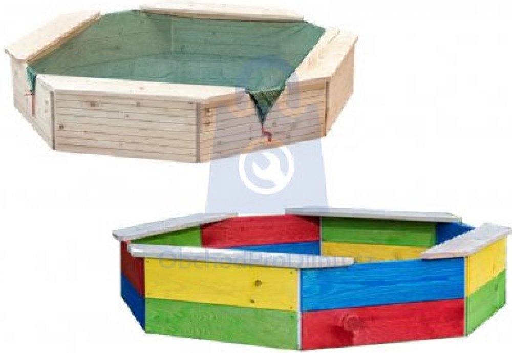 Dřevěné pískoviště je dodáváno s ochrannou plachtou, která chrání písek před nečistotami v době, kdy si v něm děti nehrají.