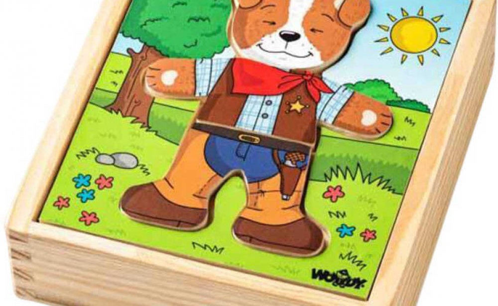 Woody puzzle šatní skříň Pejsek 18 dílů
