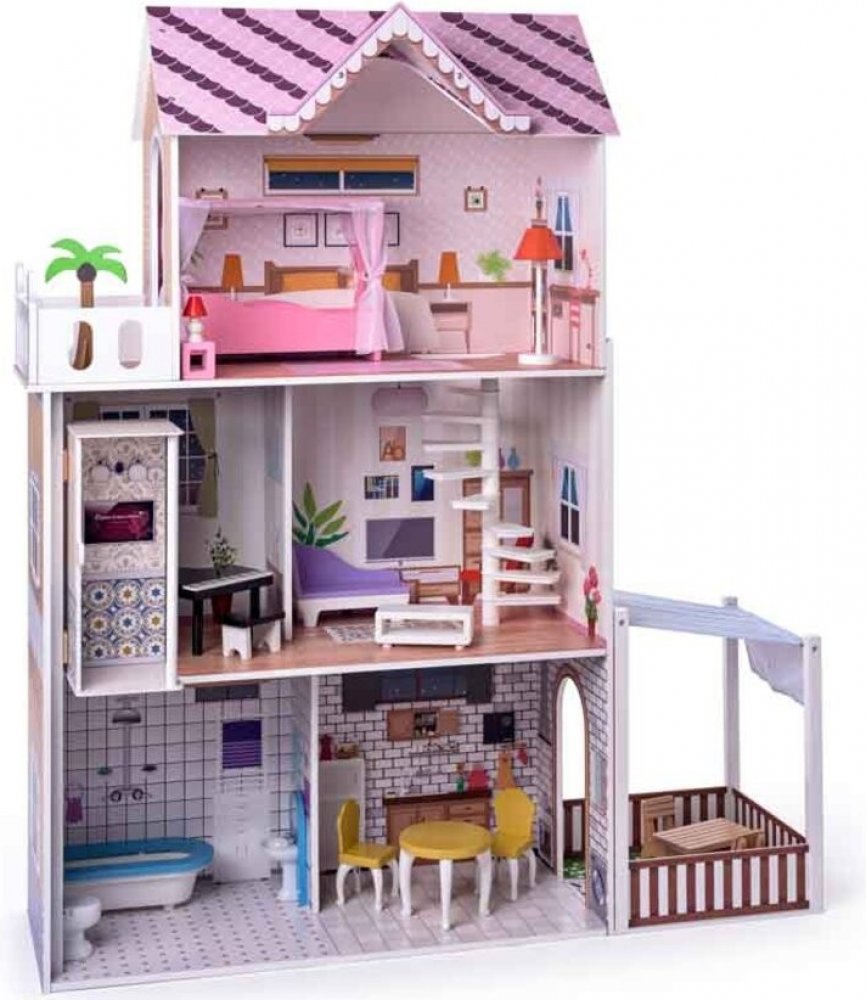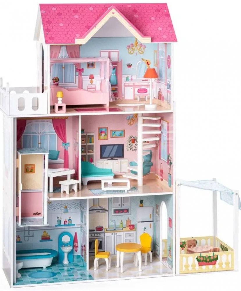 Kvalitní třípatrový domeček pro menší panenky. Krásny vybavený domeček, ve kterém budou tvé panenky jako doma.