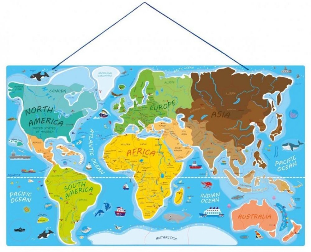 - Dítě nejprve přikládá dílky znázorňující jednotlivé státy nebo území na magnetickou plochu.