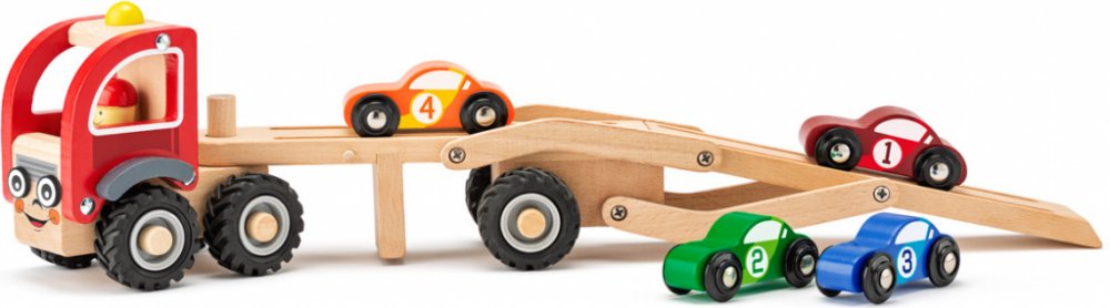 Balení obsahuje: tahač, návěs a 4 auta.