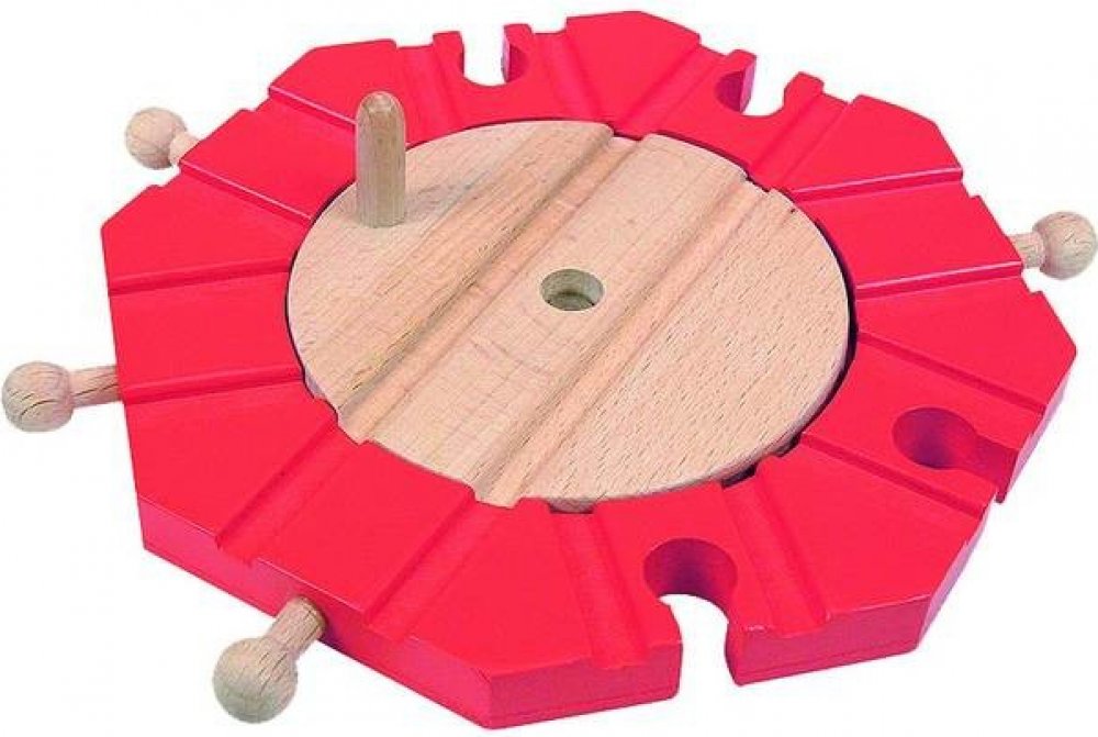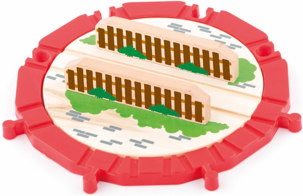 Dřevěná točna šikovně obohatí stávající nebo novou vláčkodráhu. Stejně jako další mašinky, vagónky a nové příslušenství Woody, je i točnaí snadno kombinovatelná s dalšími sadami jiných značek.