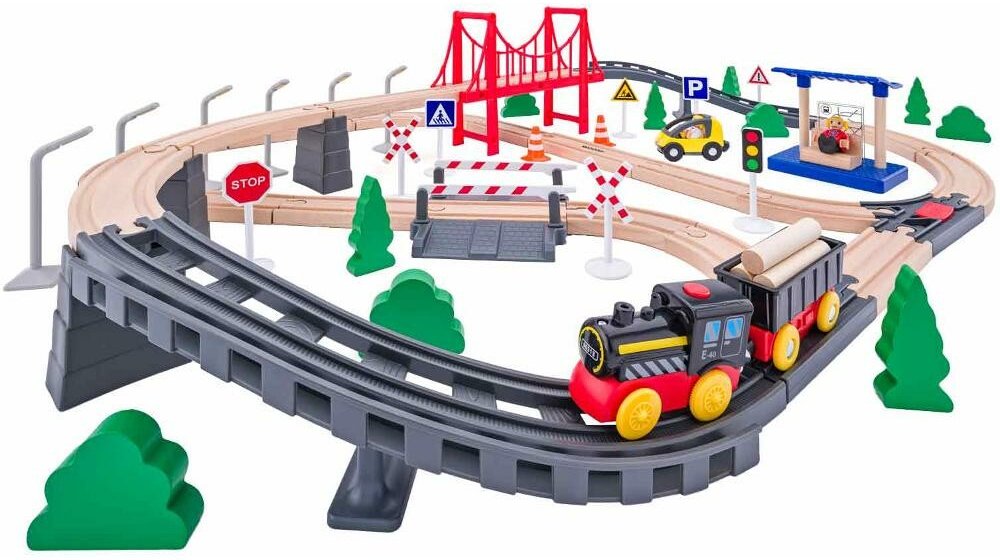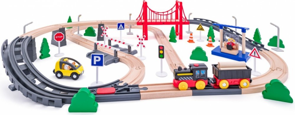 Woody Vláčkodráha s elektrickou mašinkou a mostem 80 dílů